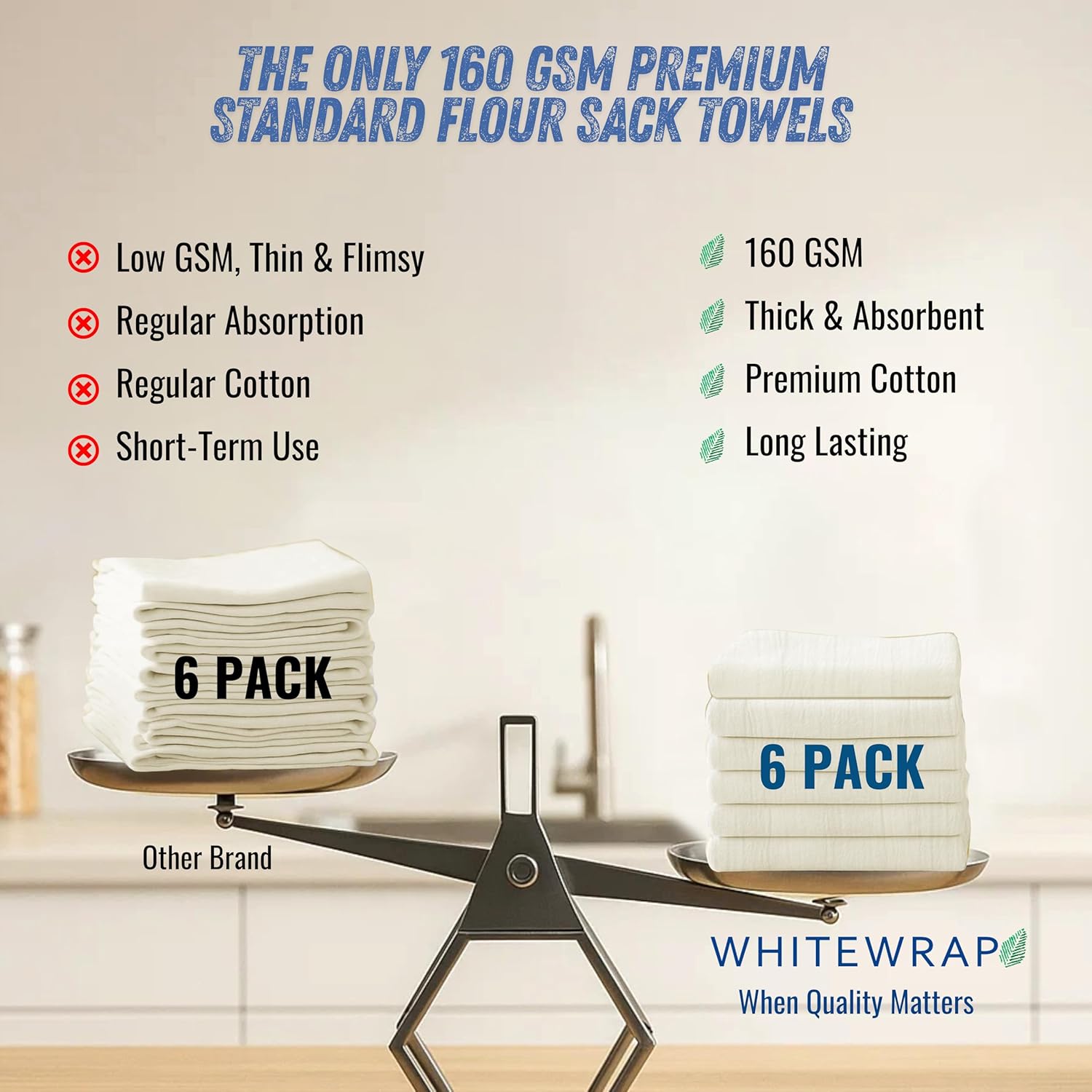 - ✅ Ultra-Thick 160 GSM Flour Sack Towels – Kitchen-Grade Absorbency Tired of thin, ineffective towels? WHITEWRAP’s high-density 160 GSM flour sack towels, made from 100% ring-spun cotton with a 130 thread count, offer exceptional thickness and ideal for drying dishes, wiping, and tough kitchen tasks.