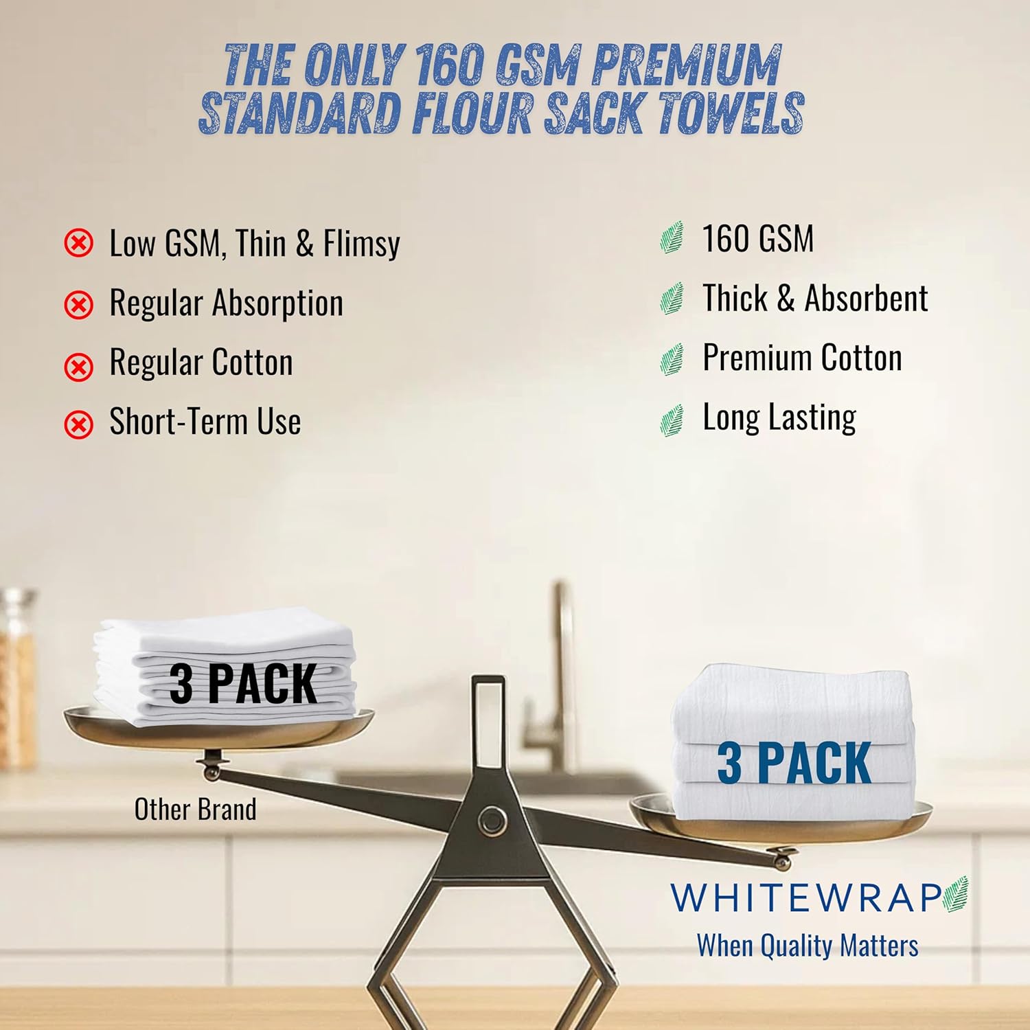 - ✅ Ultra-Thick 160 GSM Flour Sack Towels – Kitchen-Grade Absorbency Tired of thin, ineffective towels? WHITEWRAP’s high-density 160 GSM flour sack towels, made from 100% ring-spun cotton with a 130 thread count, offer exceptional thickness and ideal for drying dishes, wiping, and tough kitchen tasks.