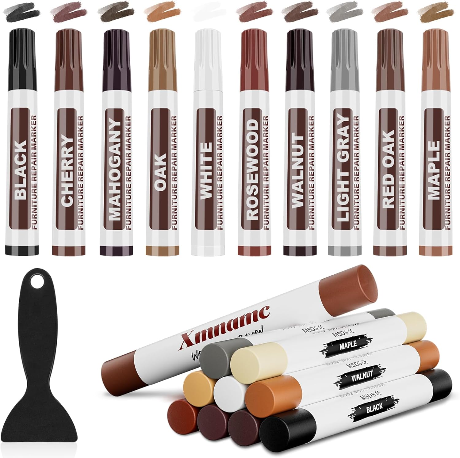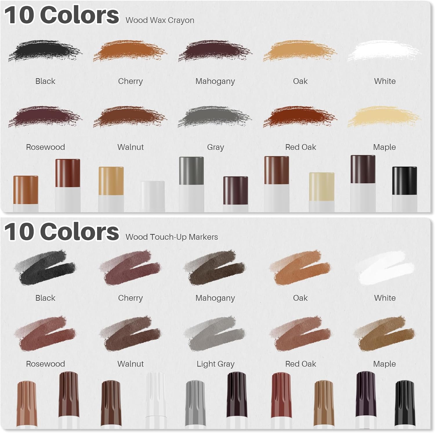 - Wide Range of Colors: Our wood filler sticks and wood repair markers are available in 10 colors: white, maple, oak, gray, cherry, red oak, mahogany, walnut, rosewood, and black. This variety of colors helps you find the perfect match for any wood surface, ensuring a seamless repair.