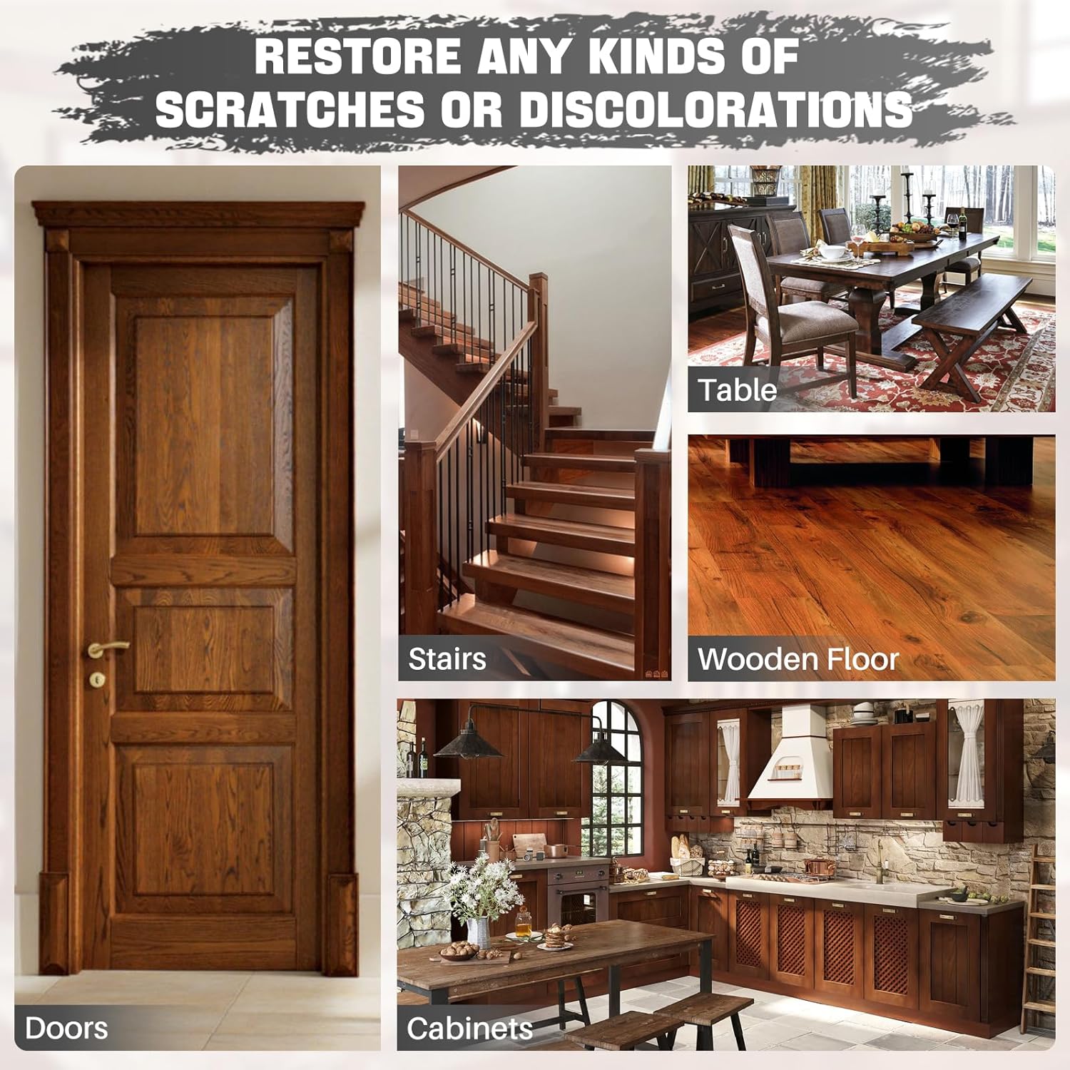 - Wide Applications: The wood crayons and wood touch-up markers can quickly repair scratches, cracks, and holes on wooden furniture, floors, cabinets, tables, doors, and frames. Using a furniture repair kit for home restoration is an easy and efficient method.