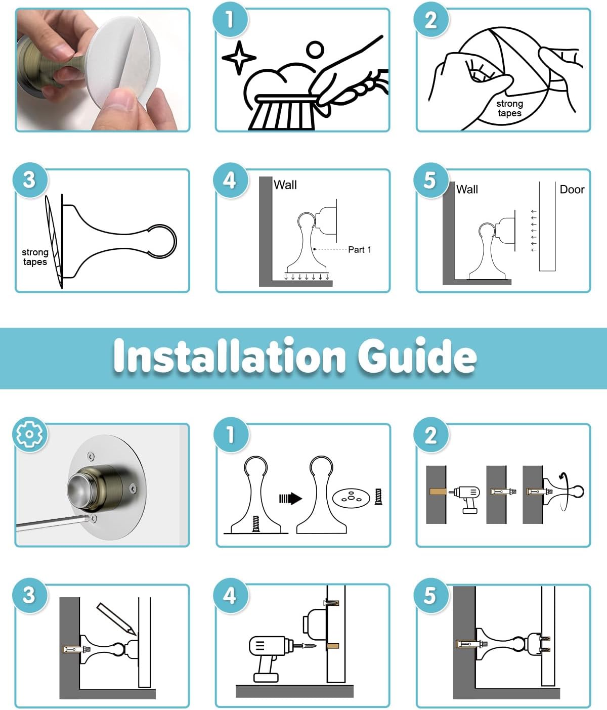- [Simple Setup & Durable Construction] Effortlessly install your HELEMAN Magnetic Door Stopper, perfect for door stoppers for wall and bottom of door, with screw-in or no-drill strong adhesive options. Crafted from premium stainless steel, these magnet door stops ensure long-lasting durability, having passed rigorous tests (10,000 times) to guarantee reliability. Ideal for any setting, they represent a smart, robust solution for keeping doors securely in place