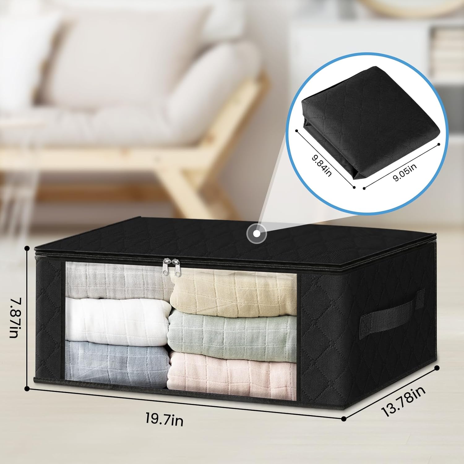 HomeHacks Storage 8-Pack Clothes Organizer Storage Bags Foldable Storage Box with Large Clear Window Sturdy Handles for Closet, Dorm, Pillows, Bedding, Clothes, Blankets, 35L, Black