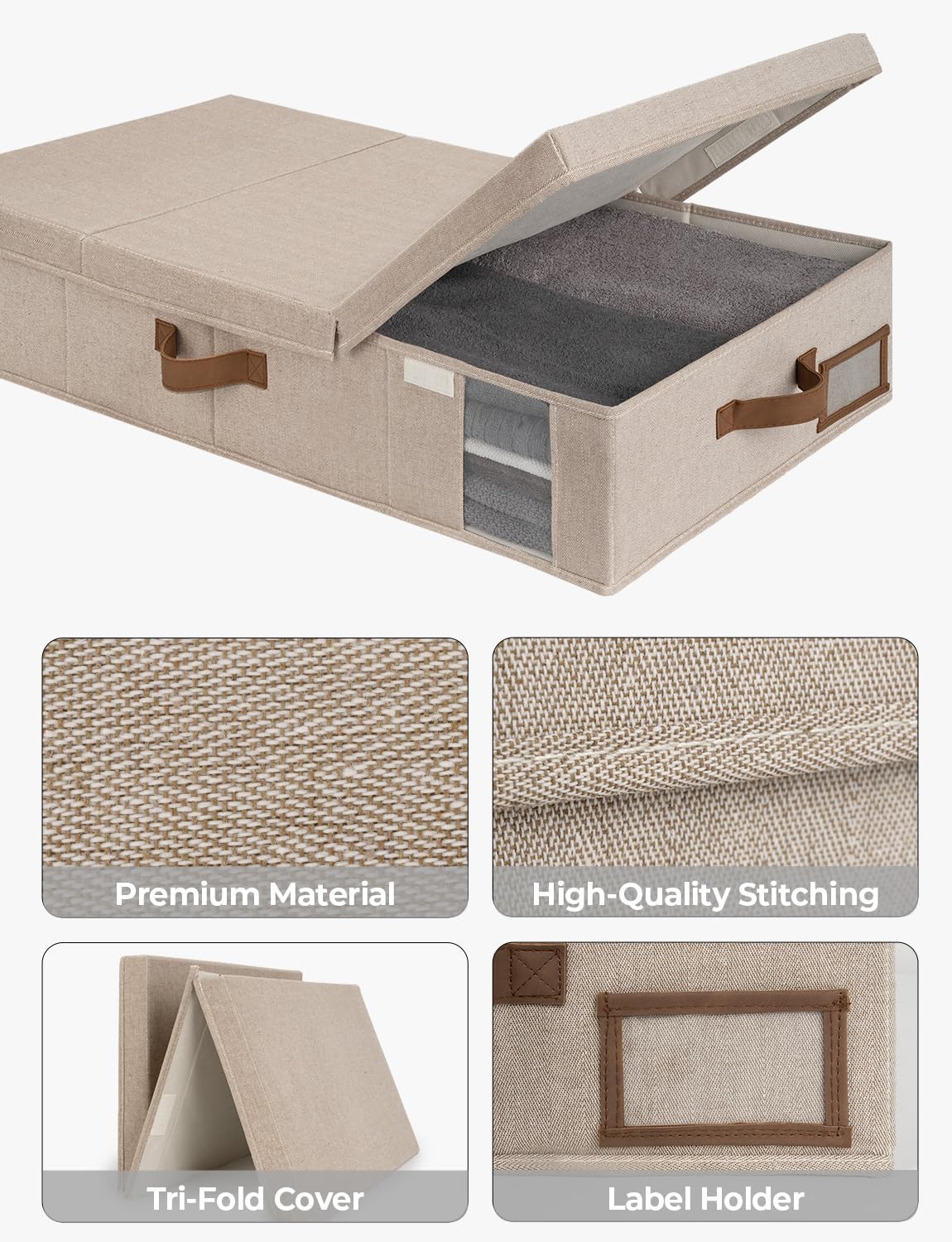StorageWorks 2-Pack Large Under Bed Storage Bins with Lids, Underbed Storage Containers with Handles and Label Holder, Closet Organizer for Clothes, Blankets, Sweater