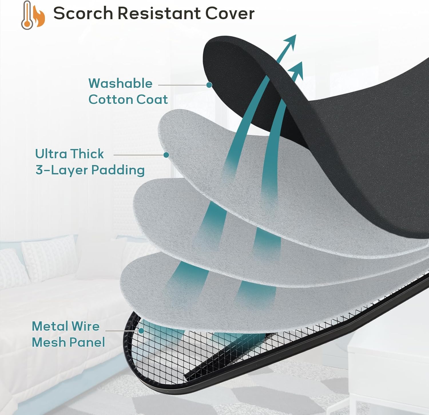 - Iron Board Cover and Pad: Extra thick heat-resistant ironing board cover which is made of 100% cotton cover with three layers of 7mm padding making the ironing task quicker and easier