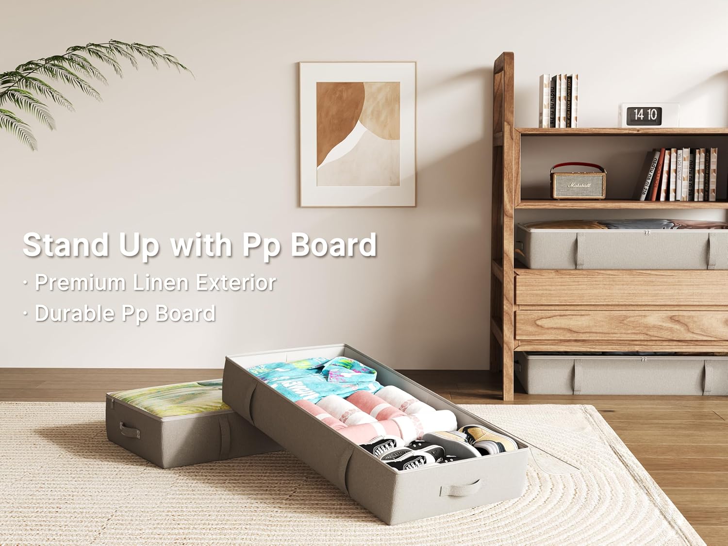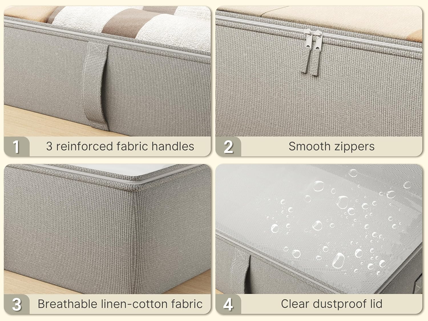 - High Quality Materials - Made of sturdy composite Linen fabric, the storage bins under the bed can hold bulky books and toys without falling apart. Durable handles and dual zippers make it easy to use in daily life. Transparent top cover helps find the items quckly
