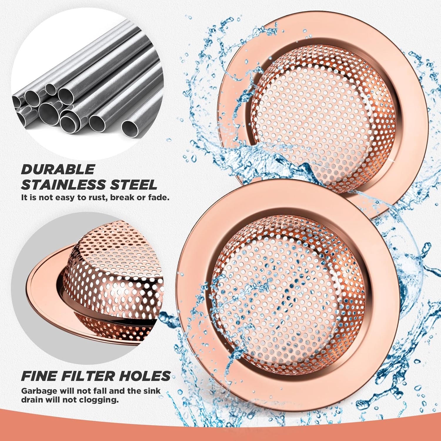 Retisee 2 Pcs Sink Strainer Stainless Steel Kitchen Sink Drain Strainer Basket Cover Mesh Hair Food Catcher, Large Wide Rim of 4.4 Diameter(Rose Gold)
