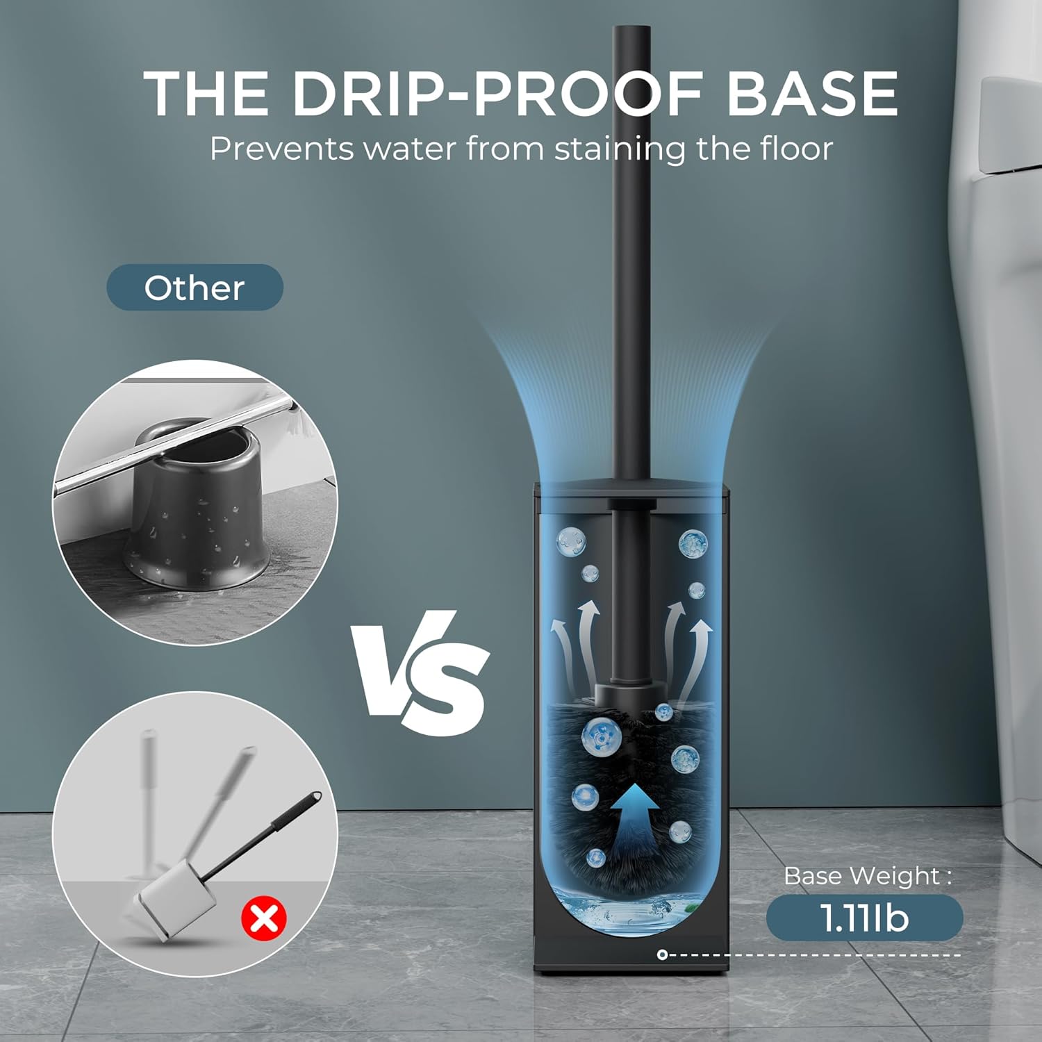 - Drip-Proof Heavy Duty Base: Designed with a sturdy and compact base, FORIOUS toilet bowl cleaners brush and holder effectively catches drips, preventing water stains on your floor while keeping your bathroom organized and tidy