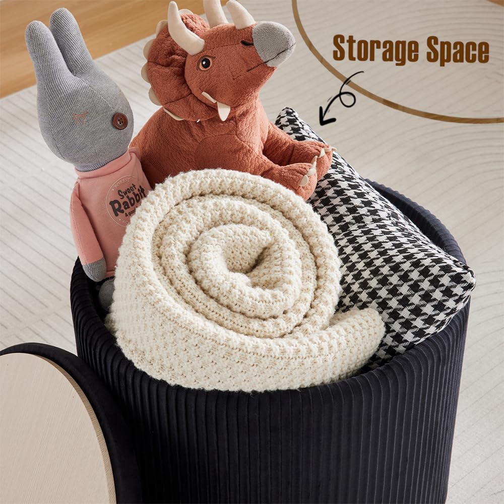 Big Round Ottoman with Storage Set of 2,Upholstered Velvet Vanity Stool for Makeup Multifunctional Foot Rest Coffee Table Padded Seat Tufted Ottomans for Living Room&Bedroom (Black)