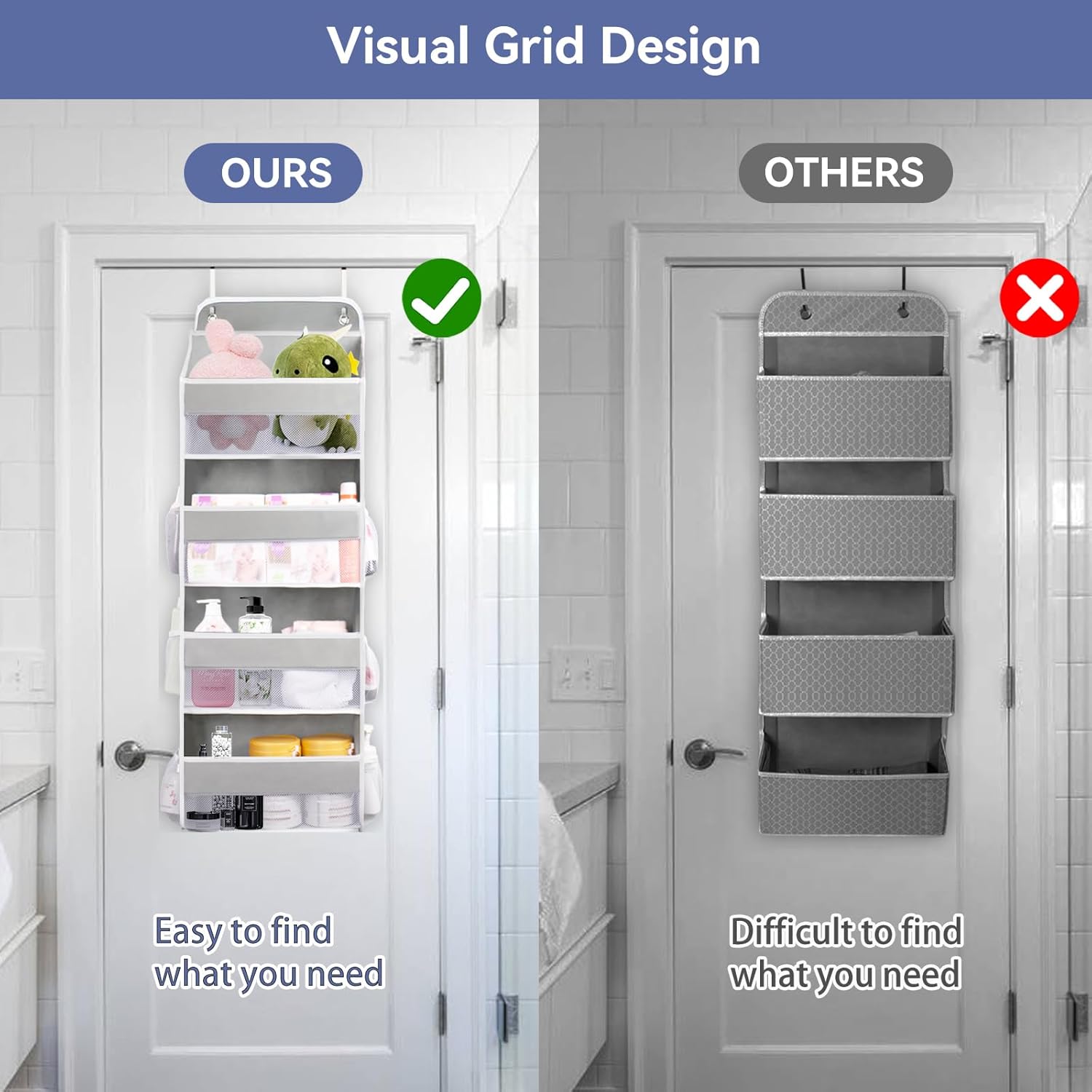 - EASY TO ACCESS : The thoughtful design of visable window for over the door organizer nursery allows you to find the items you need at a glance, making it convenient and quick for you to access,thus avoiding the Invalid storage