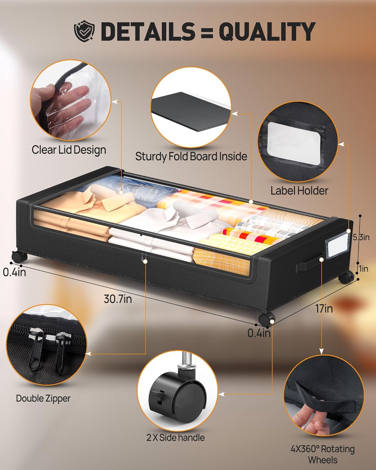 - 【At-a-glance design】Our rolling under the bed storage comes with a clear window and label design that allows you to easily and quickly identify each contents of the bin. Say goodbye to the hassle of misplacing items. Plus, your pets will never make a mess under the bed again. With a double zipper design and high-quality materials, the under bed storage bins are completely protected from dust, moisture and dirt, ensuring that your items are clean and dust-free, and saying goodbye to clutter!