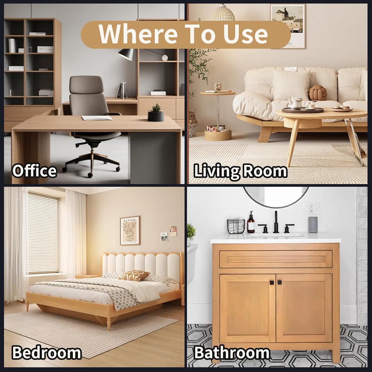 - Unique oak color series in 7 colors: Whitewash Oak, Natural Oak, Golden Oak, Ivory Oak, Walnut Oak, Espresso Oak, Black Oak