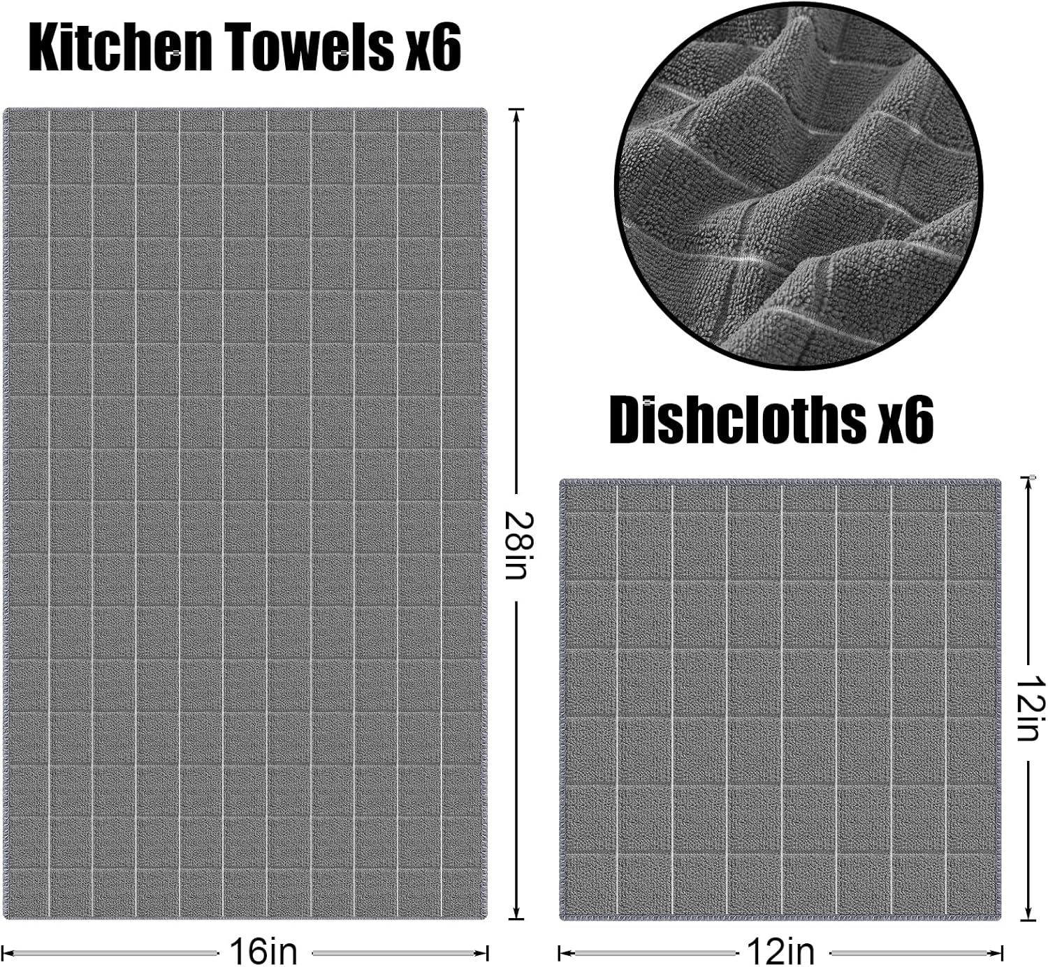 - Versatile Usage: The collection includes 6 Pack 16 x 28 Inches & 6 Pack 12 X 12 Inches, Not just limited to the kitchen, these versatile dishcloths can be used for a variety of tasks. From wiping down surfaces in the bathroom to cleaning up spills in the living room, they are a handy addition to any household