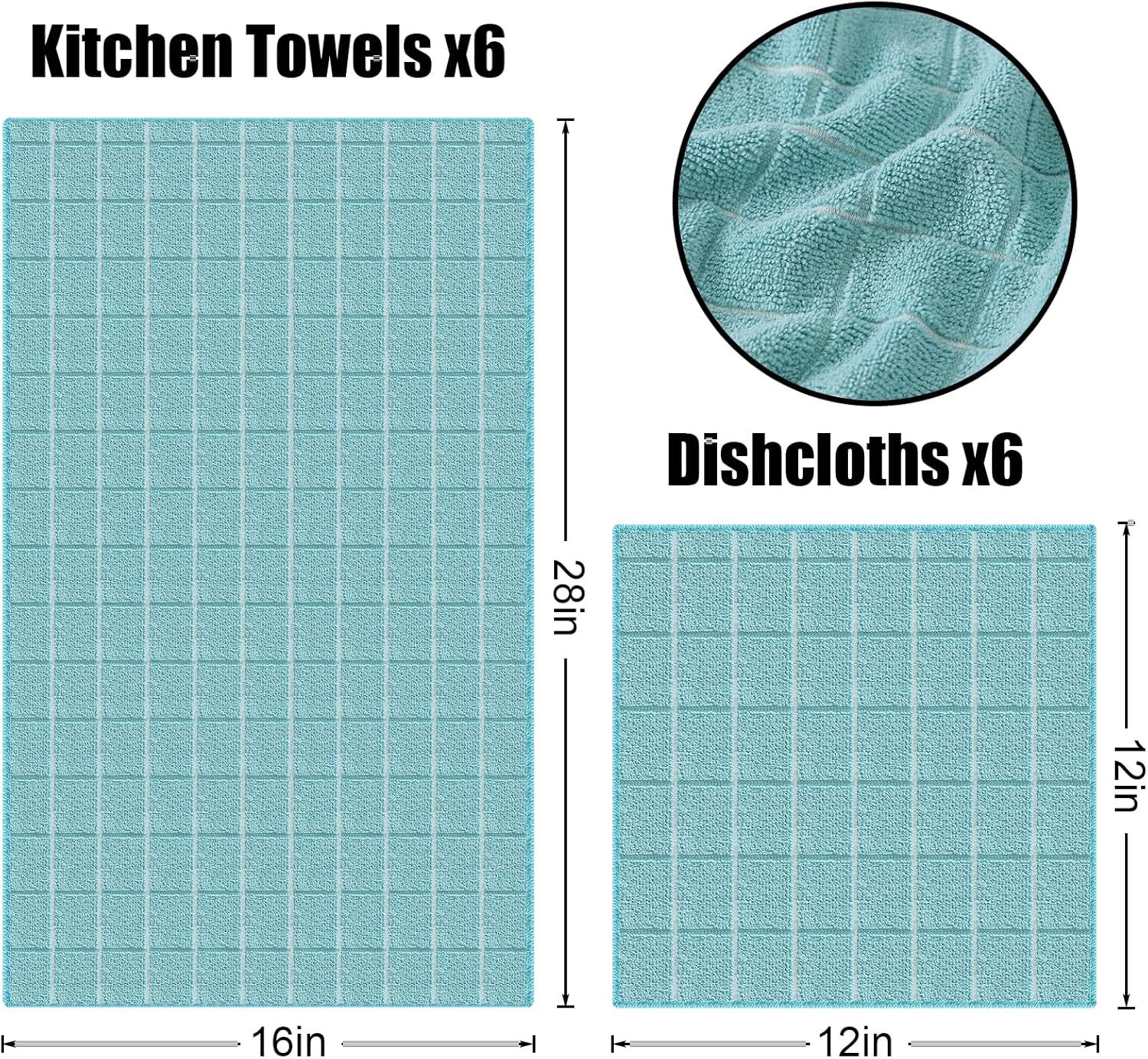 - Versatile Usage: The collection includes 6 Pack 16 x 28 Inches & 6 Pack 12 X 12 Inches, Not just limited to the kitchen, these versatile dishcloths can be used for a variety of tasks. From wiping down surfaces in the bathroom to cleaning up spills in the living room, they are a handy addition to any household