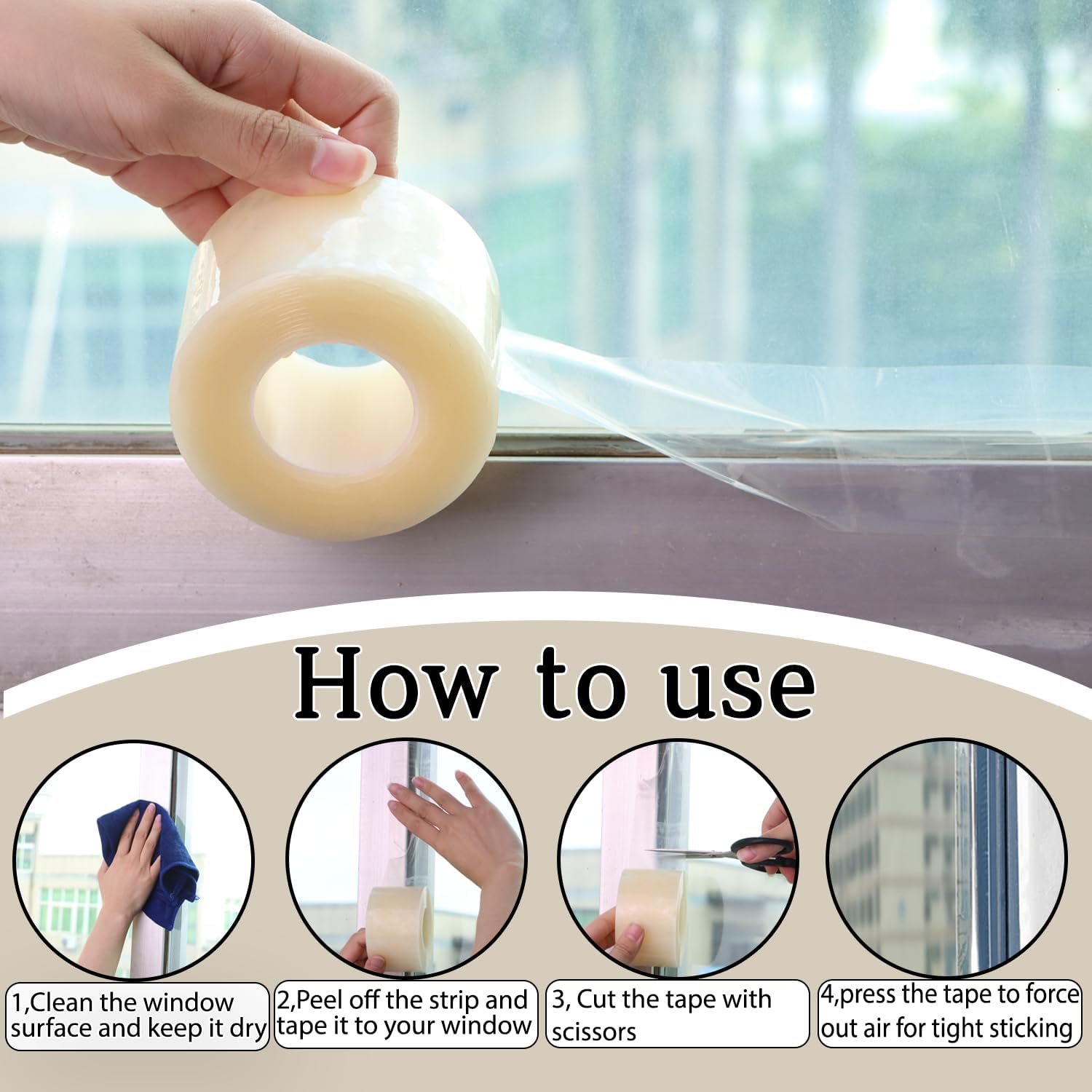 - Strong Adhesive but surface safe adesive: Transparent weather sealing tape is made of high-quality, weather-resistant materials that can withstand extreme temperatures, moisture, and DIY repair to sealing on windows,doors. Sticks strongly while being residue-free, removable and surface-safe