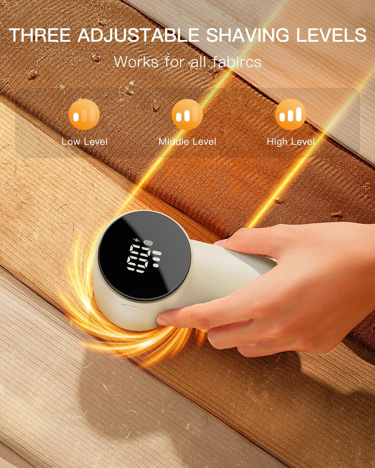 - 【Clear Digital Display & Easy-Empty Bin】 Stay in control with a smart digital screen that shows battery life, speed setting, and charging status. The oversized, transparent lint collection bin is easy to see and easy to empty, making cleanup quick and mess-free. Give your wardrobe a like-new look in seconds!
