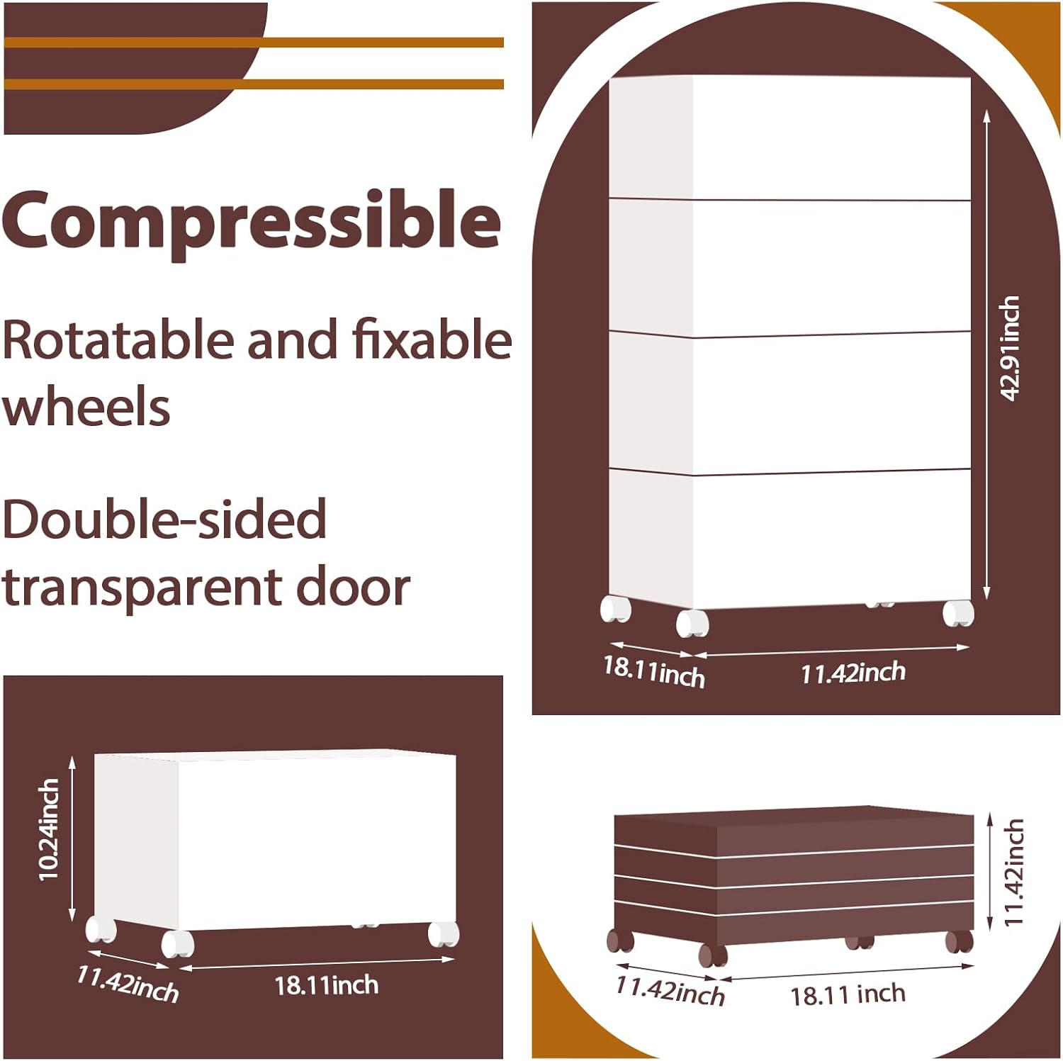 - Flexible and Convenient Design: The double-opening transparent door can be entered from the front and back, which is convenient for viewing and taking items, and is suitable for any space. The cabinet can be folded and has wheels for convenient storage and transportation, which enhances practicality.
