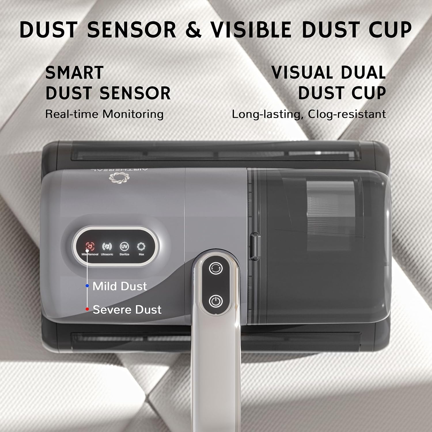 AIRTHEREAL M1 Mattress Vacuum Cleaner, 6 in 1 Bed Vacuum with High-Frequency Vibration - 80,000 RPM Dual Brushroll Rotation, UV-C Light, 14Kpa Suction, Dust Sensor, Ultrasonic and Heating Tech
