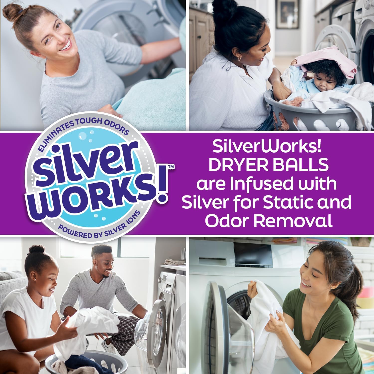 - REUSABLE FABRIC SOFTENER & STATIC REDUCER: SilverWorks! wool dryer balls prevent laundry from clumping together throughout the drying cycle reducing wrinkles, twisting, and tangling while gently softening fabrics and removing static.