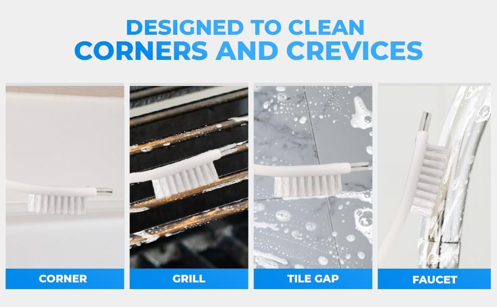 - VERSATILE SCRUBBING AND SCRAPPING TOOL: This dual-purpose VersaScrub brush is ideal for cleaning grout, juicers, air fryers, ovens, humidifiers, toasters, sterilizers, graters, microwaves, bathtubs, tiles, showers, walls, baseboards, bottles, filters, and more. The bristle end effectively tackles tough scrubbing tasks, while the pointed scraping end is perfect for removing stubborn dirt and grime from tight spaces. Pair with Tackzo for a complete cleaning solution.