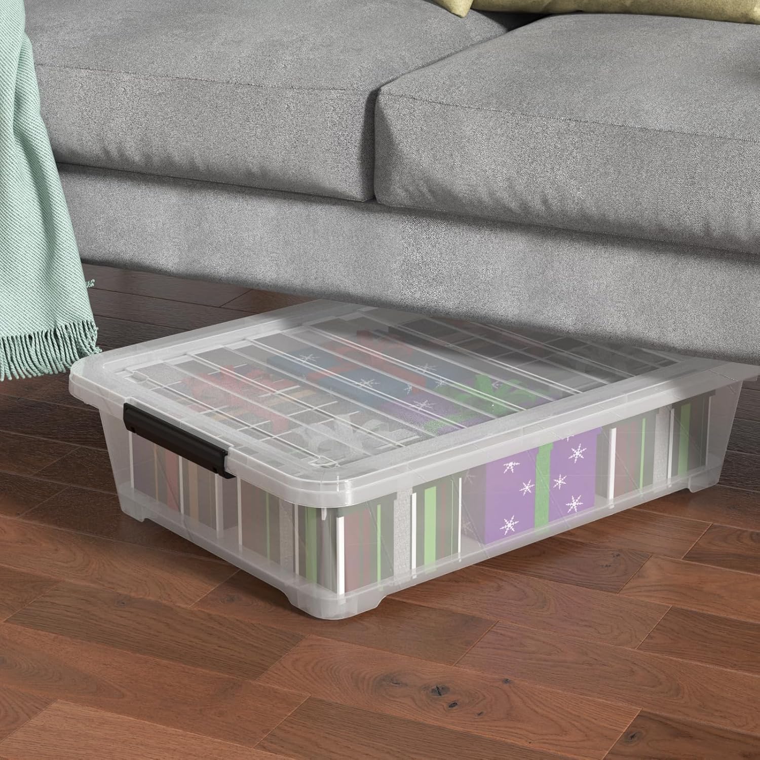 - Bottom of the box equipped with 4 wheels, making it easy for us to pull the box out from under the bed