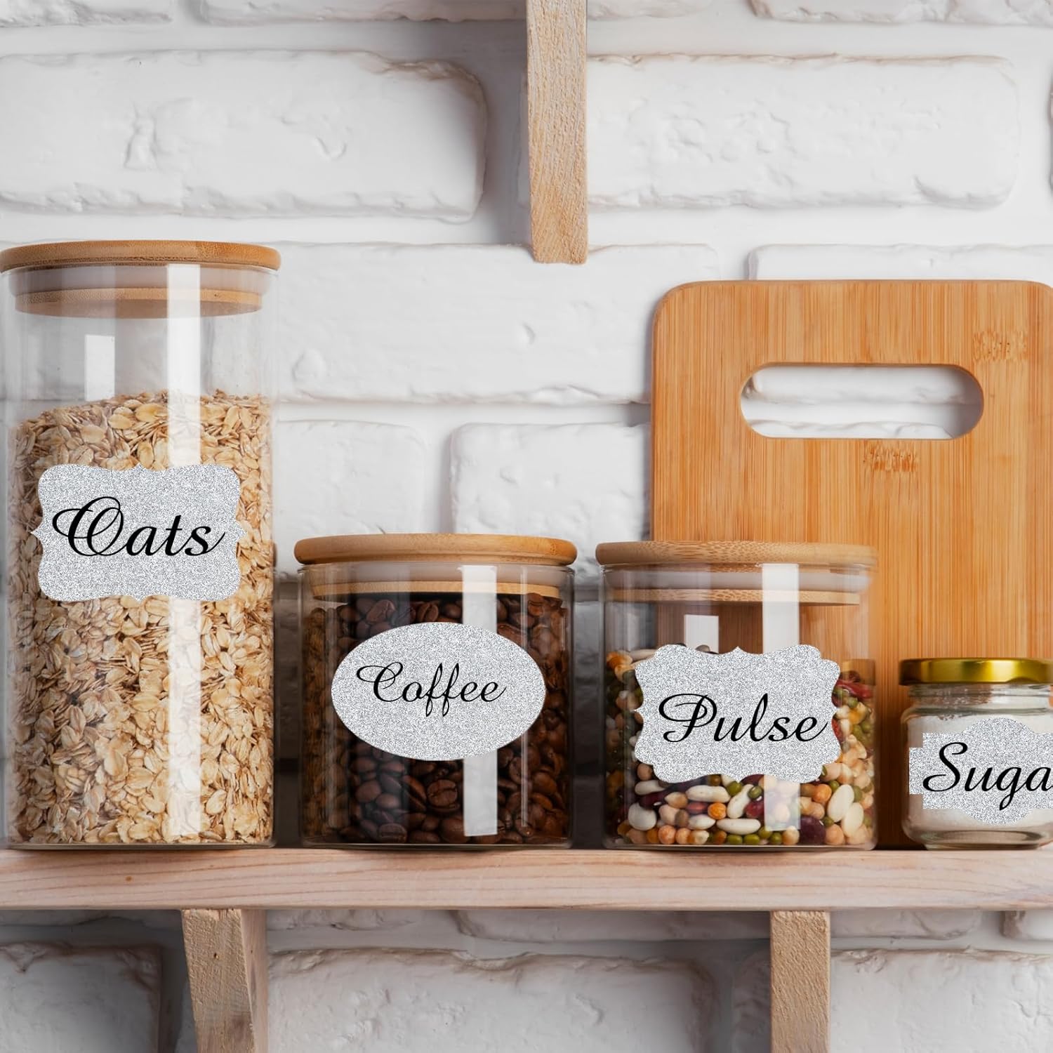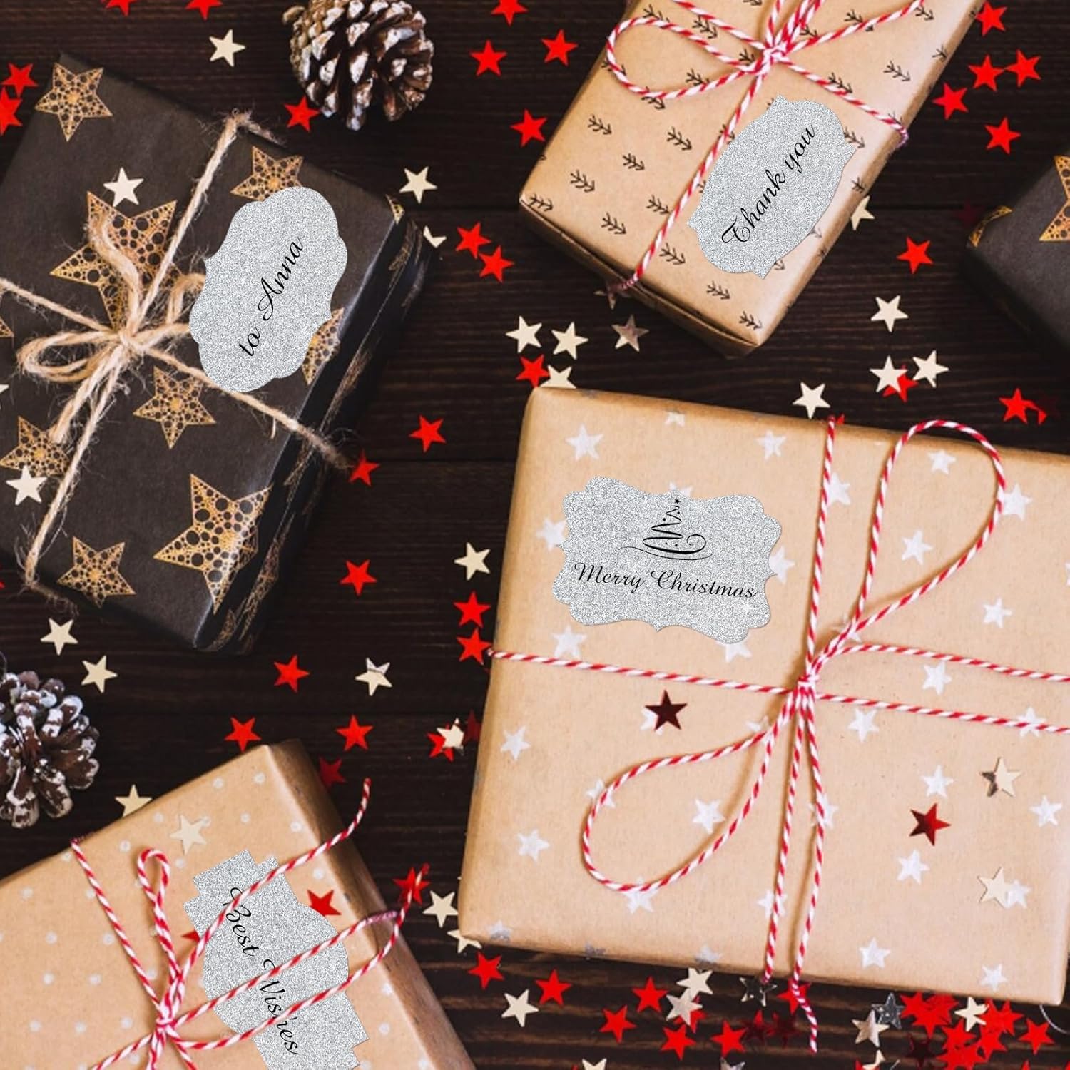 350 PCS Gift Tags Stickers Name Labels Stickers,2" x 1.2" Fancy Shape Stickers Self-Adhesive Handmade Bottle All-Purpose Jar Labels for Presents Cosmetic Decoration Jars Food Craft (Bright Silver)