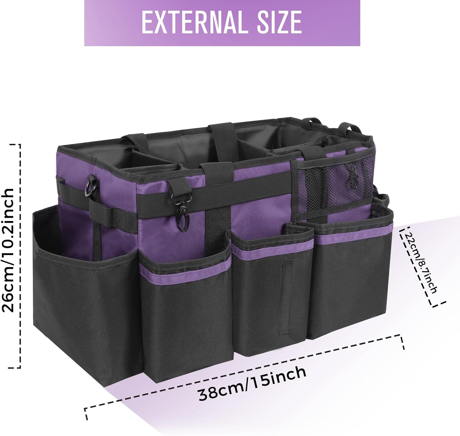 Wearable Cleaning Caddy, Cleaning Caddy Supplies Organizer with Handle & Shoulder Straps for Housekeepers, Under Sink & Car Cleaning Tool Organizers Bag with 4 Foldable Divider (Purple)