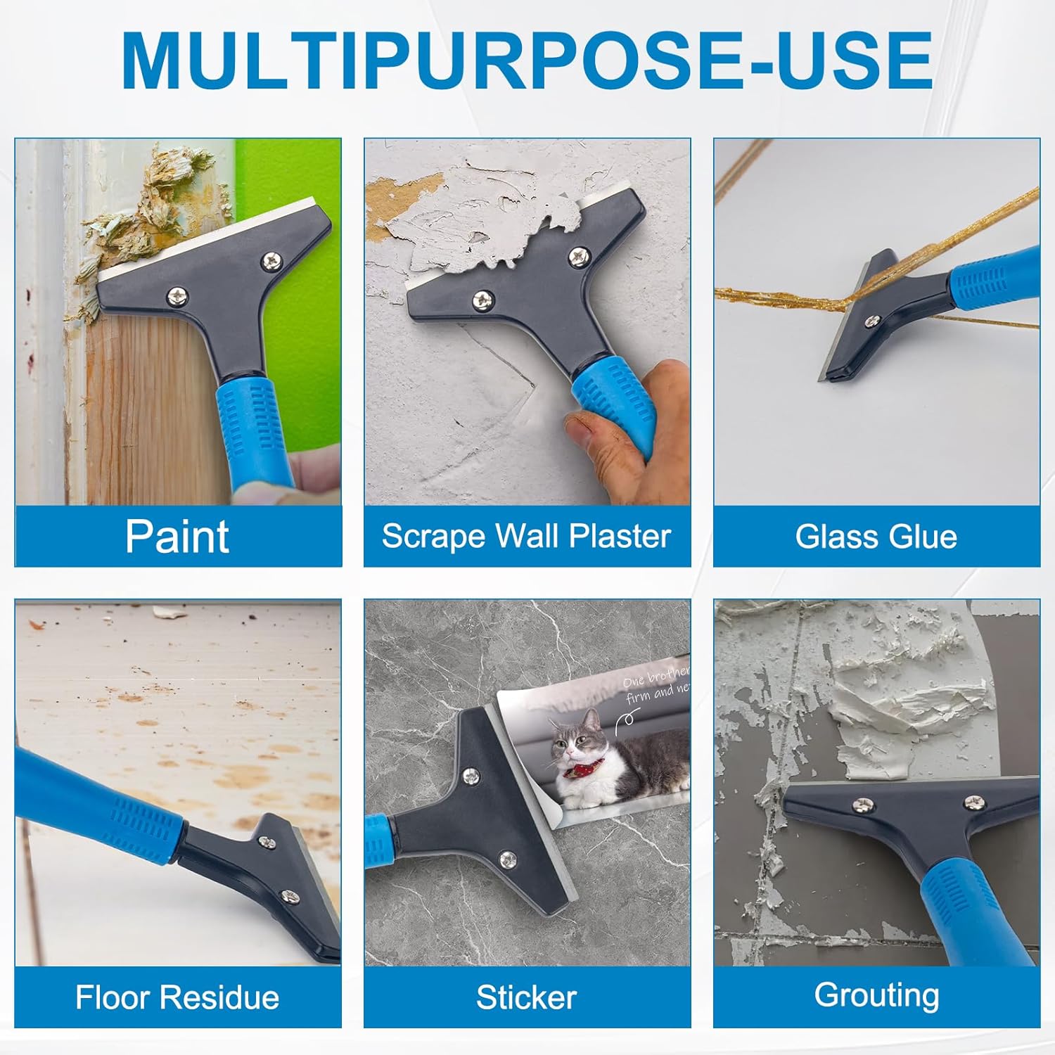 - 🌟This long handle scraper is ideal for removing wallpaper, cleaning floors, glass and tile. Ideal for tough jobs on floors, walls and ceilings, such as cleaning tiles, wallpaper, floors, painted floor chips, wall tape, peeling paint, bathroom glass stickers and more
