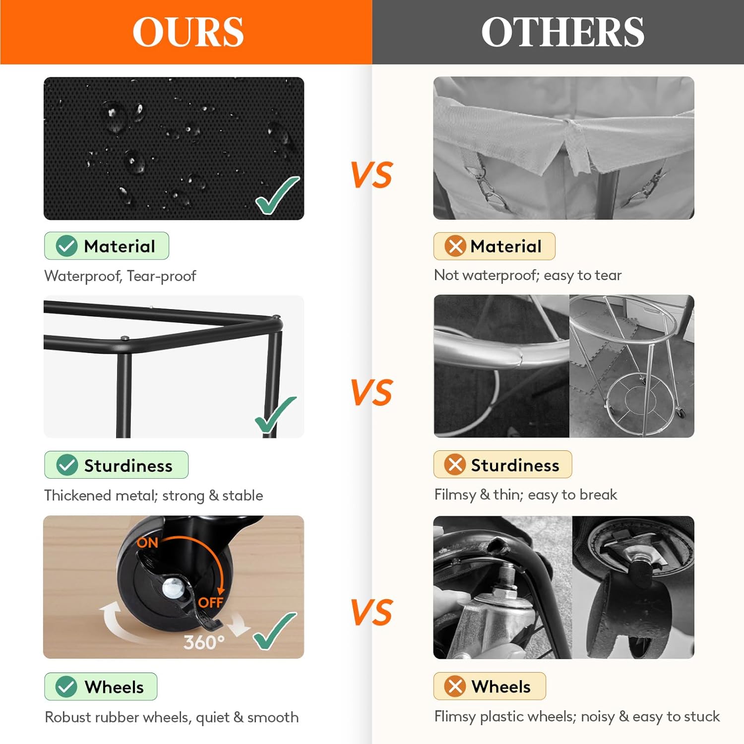 - Unmatched Durability: Crafted with a premium 0.6'' (1.6 cm) diameter steel tube frame, expertly treated for rust resistance; the laundry hamper is made from leather and tear-resistant Oxford fabric, featuring a waterproof lining inside; this laundry cart is built to last—your reliable companion for years to come