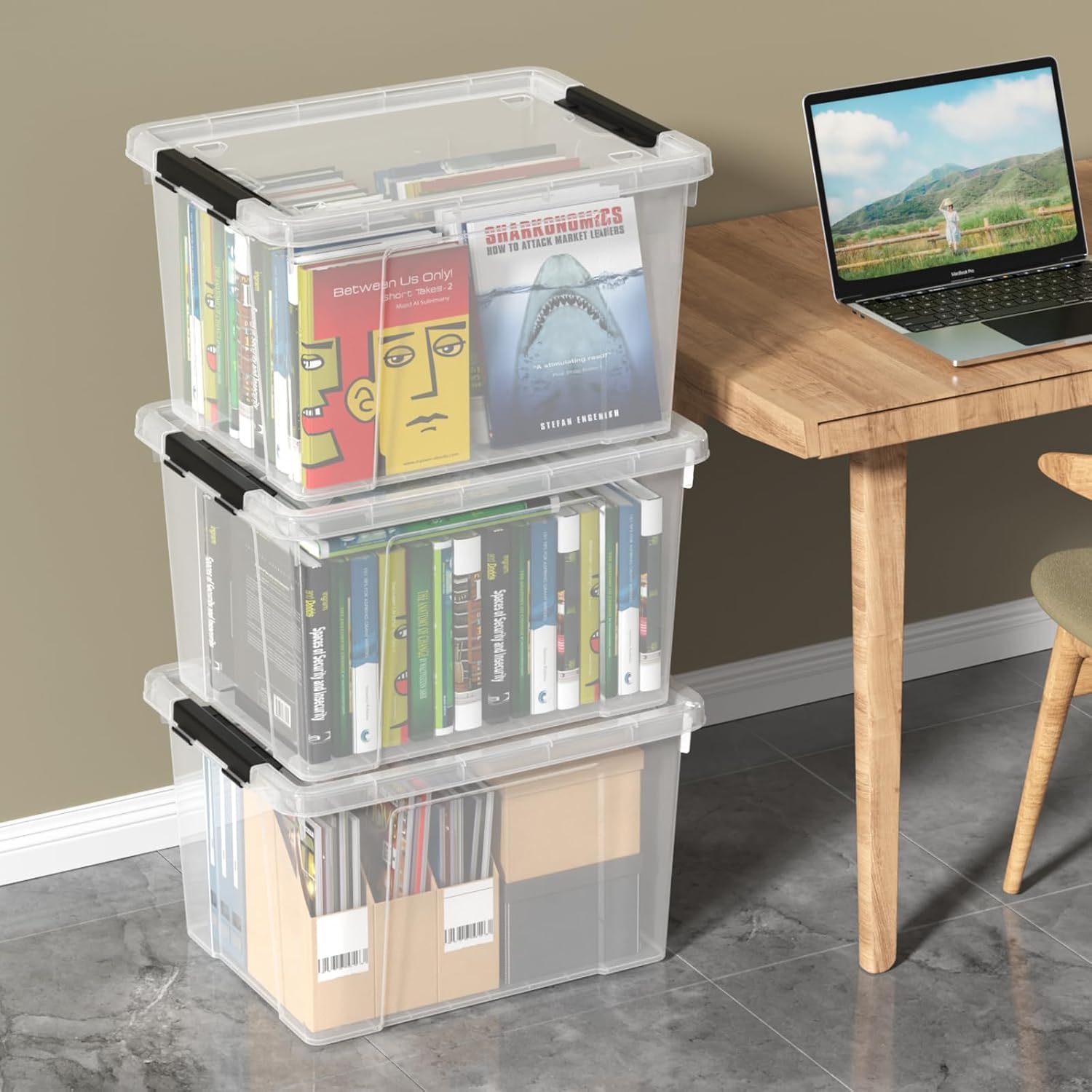 4 Pack Large Clear Plastic Storage Bins with Latching Lids, 50 Quart Plastic Storage Container with Wheels, Clear