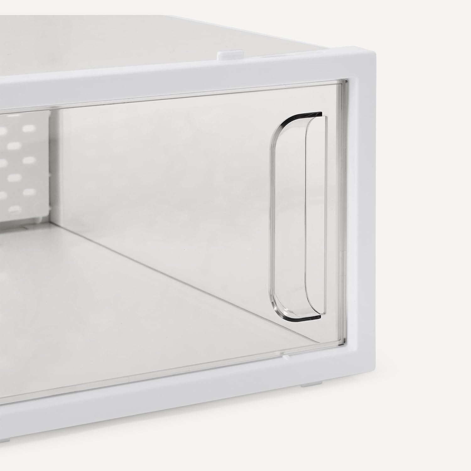 - Clear shoe storage boxes made with durable, transparent PET plastic for easy visibility of contents