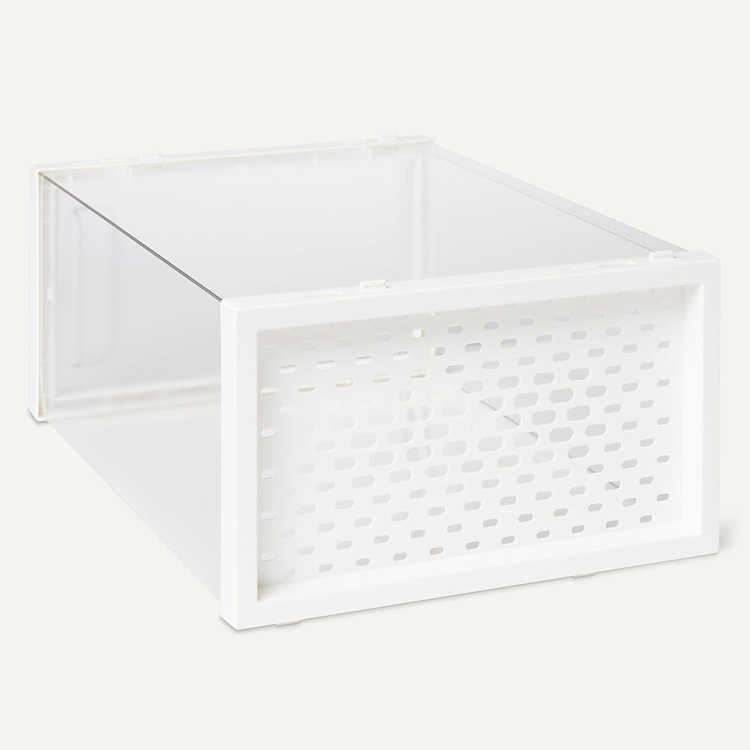- Quick assembly with vertically stackable shoe storage locking clasps to keep boxes in place