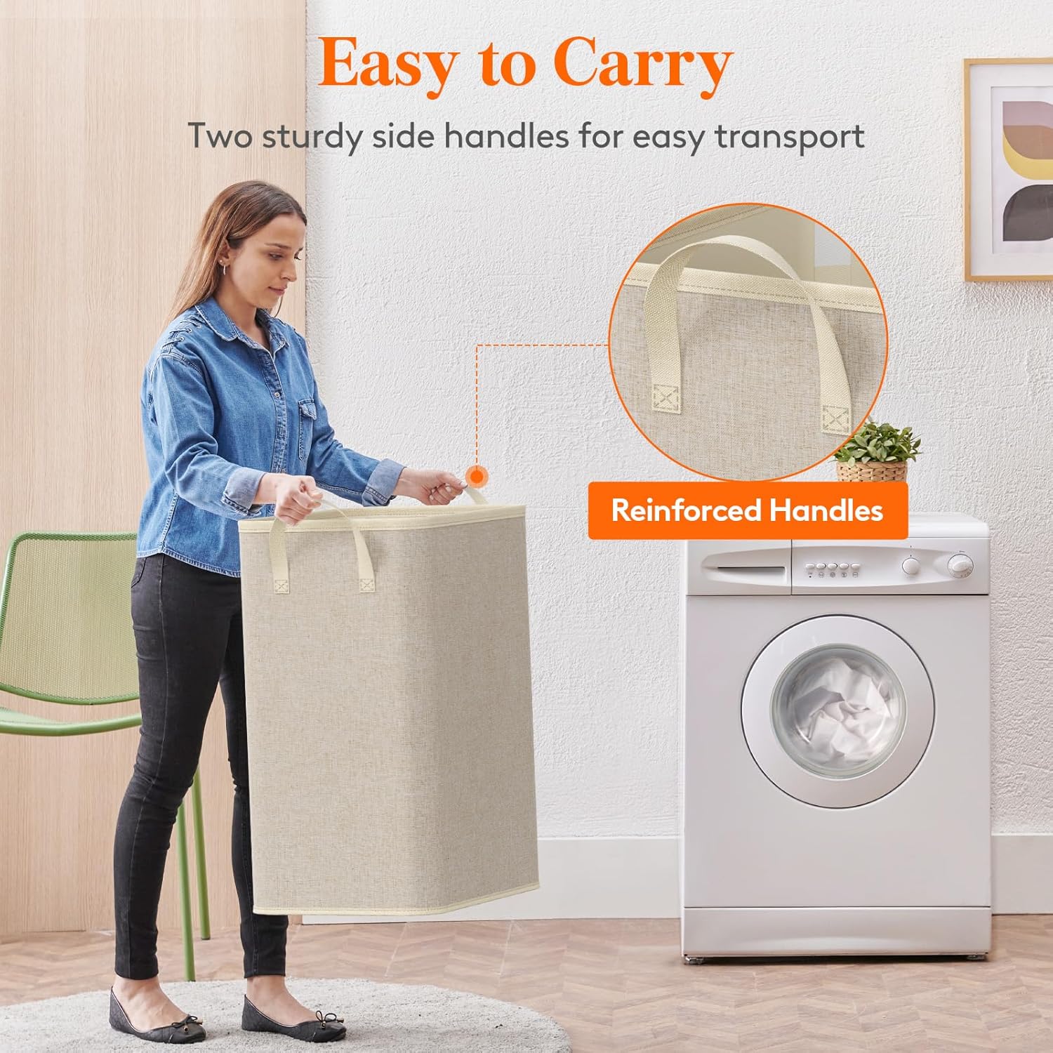 Lifewit 80L Large Tall Laundry Hamper, Collapsible Laundry Basket with Handles, Foldable Clothes Hampers for Laundry, Portable Dirty Clothes Hamper for Dorm College Bedroom Bathroom, Beige