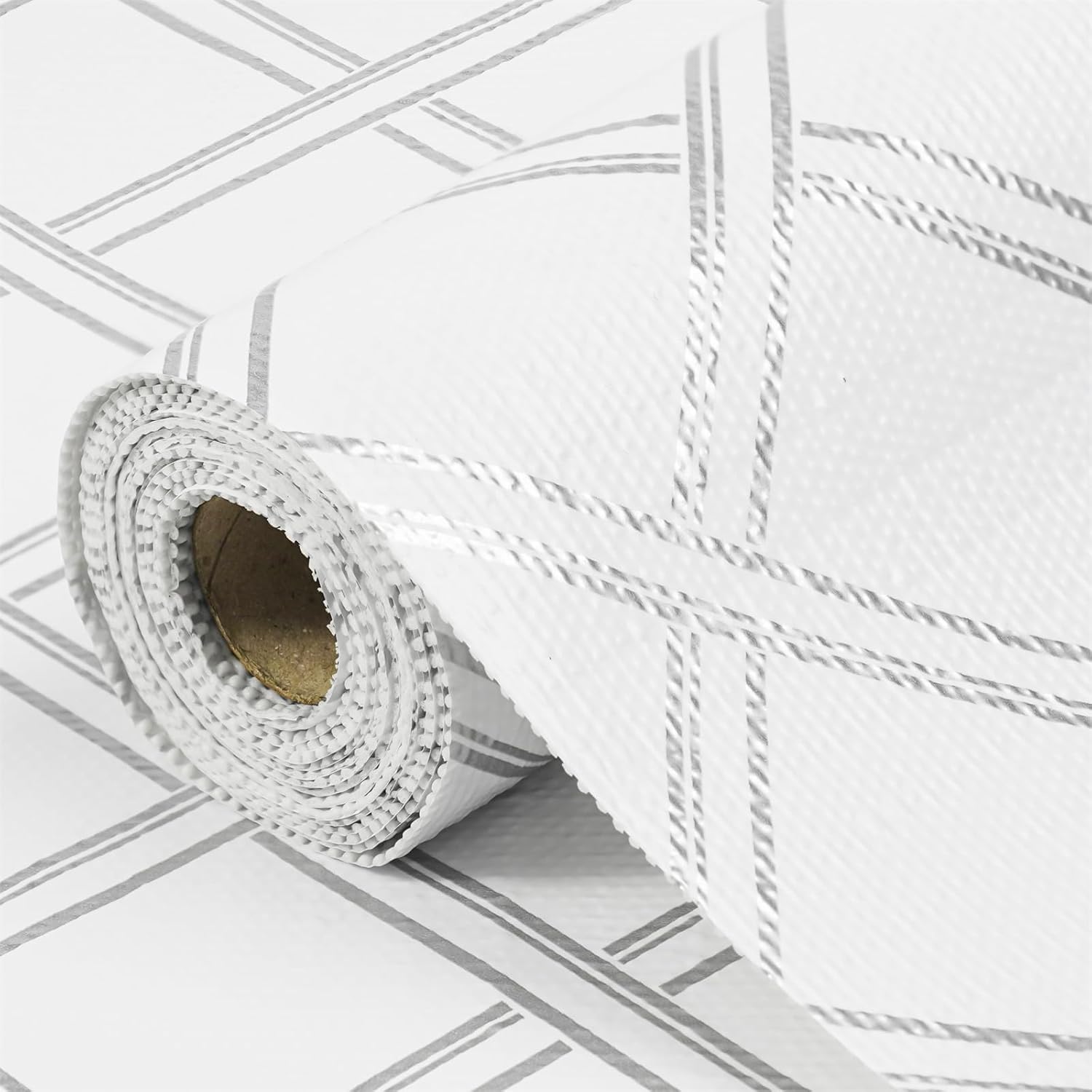 Drawer and Shelf Liners for Kitchen Cabinets Non-Adhesive Cabinet Liners Strong Grip Non Slip Waterproof Contact Paper for Cabinets and Drawers Shelves Cupboard,Silver Geometric,12IN X 20FT