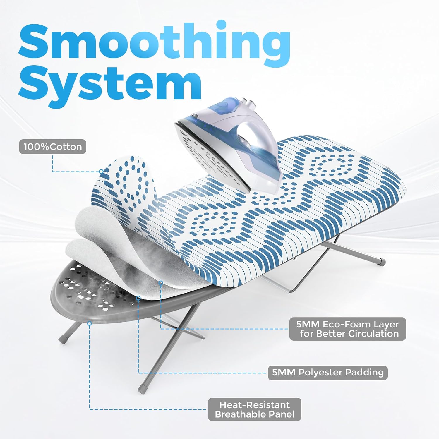 - Heat-Resistant Cover: Our tabletop ironing board with padded felt underlay and 100% cotton cover, effectively preventing being damaged due to high temperature during ironing, ensuring long-term and stable use. Flat and smooth cloth cover without any grooves for wrinkle-free clothing, is great ideal for suit, dress,collared shirt or other any garment