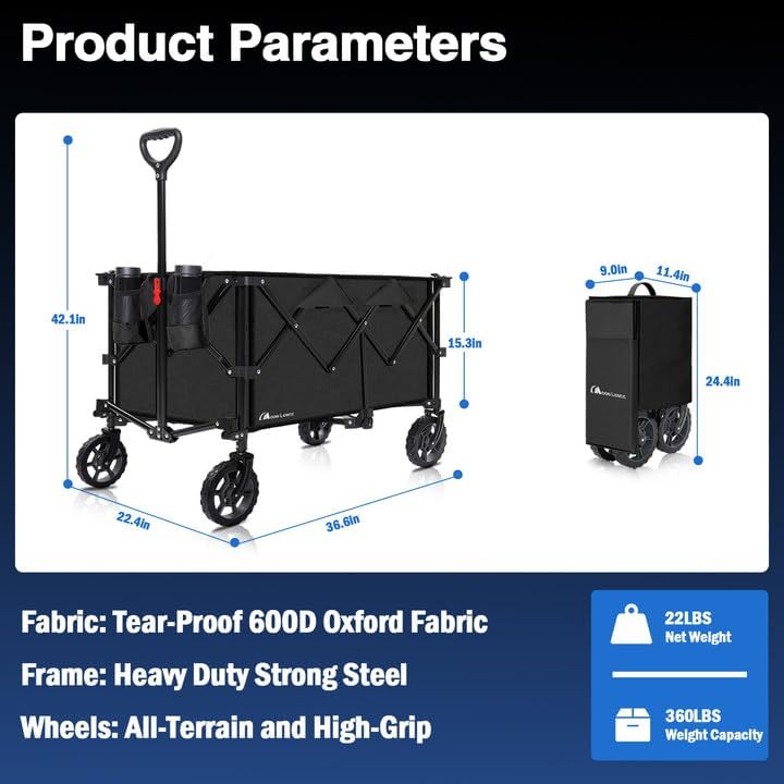 - Heavy-Duty Build: The alloy steel frame supports up to 360 lbs; Made with durable, waterproof 600D Oxford fabric that's easy to clean and built to last—ideal for your beach wagon needs