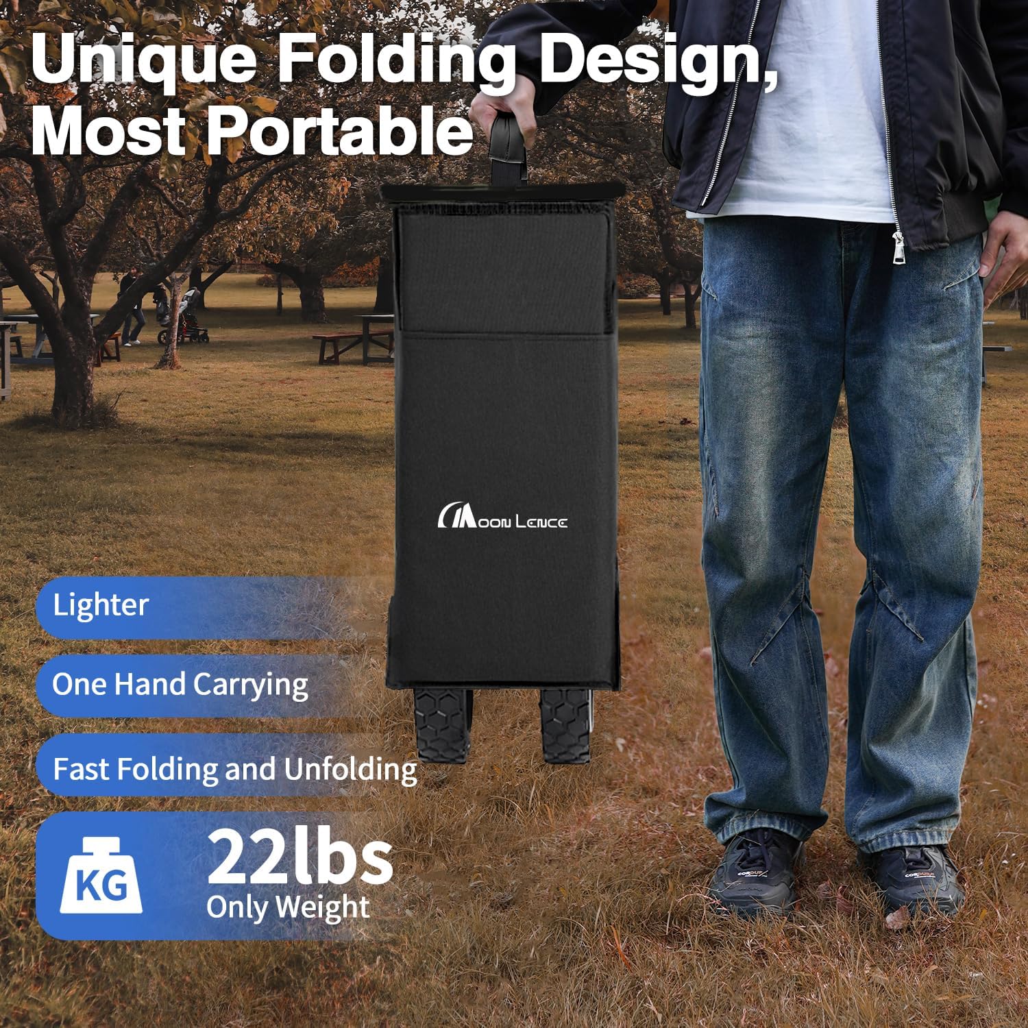 - All-Terrain Versatility: Outfitted with four all-terrain wheels, including two 360° swiveling front wheels, for easy movement on any surface. The adjustable handle offers smooth control even when loaded, making this folding wagon perfect for shopping, gardening, picnics, camping, or sports events, whether you’re exploring with a wonderfold wagon