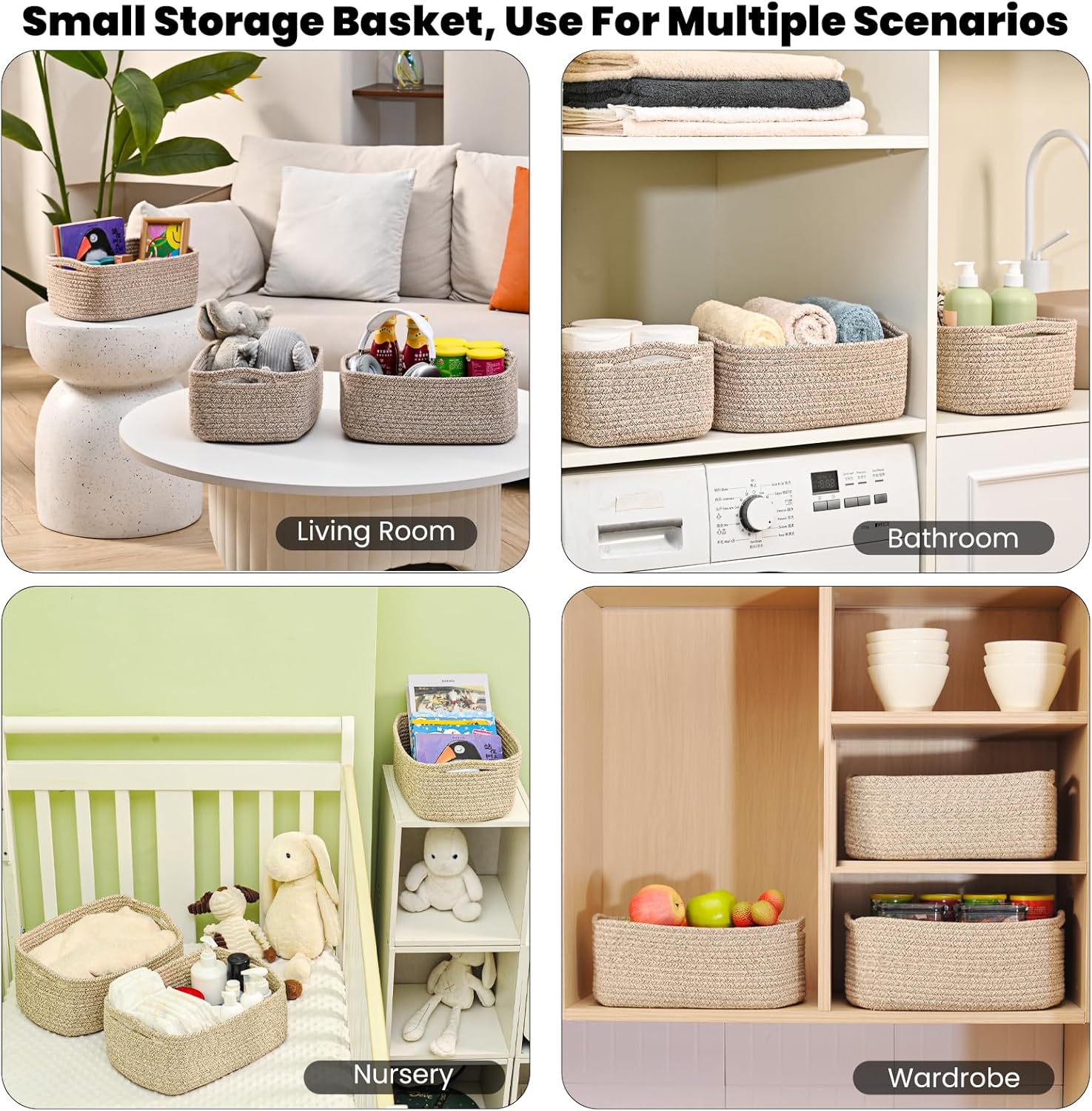 - Multi-Purpose Mini Baskets: Looking for cute baskets for gifts? This small storage basket is an excellent choice, offering a little basket charm that's perfect for gifting. And it can be sorted to store cosmetics, jewelry, baby diapers, remote controls, keys, credit cards, wallets, charging cables, toys, snacks, paper towels and more