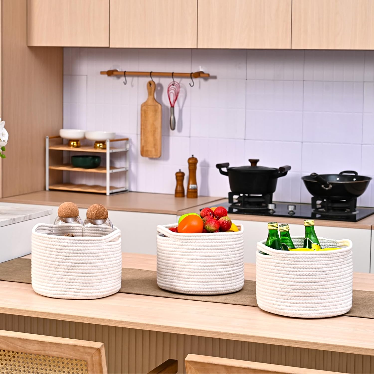 - Crafted from High-Quality Cotton Rope: These storage baskets for shelves offer durability and style. These design is both functional and aesthetically pleasing, perfect for using as burr basket ideas or organizing basket
