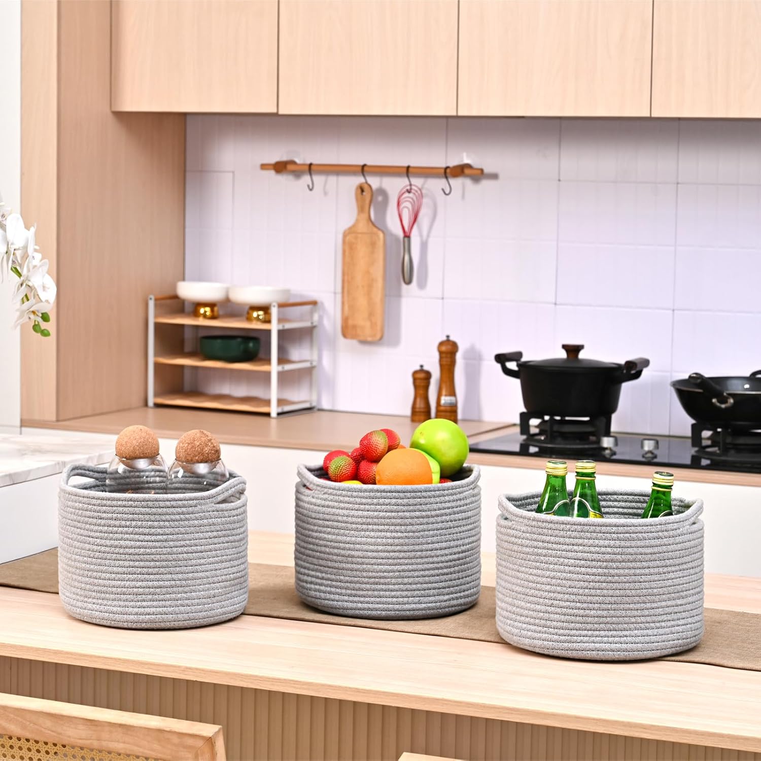 - Crafted from High-Quality Cotton Rope: These storage baskets for shelves offer durability and style. These design is both functional and aesthetically pleasing, perfect for using as burr basket ideas or organizing basket