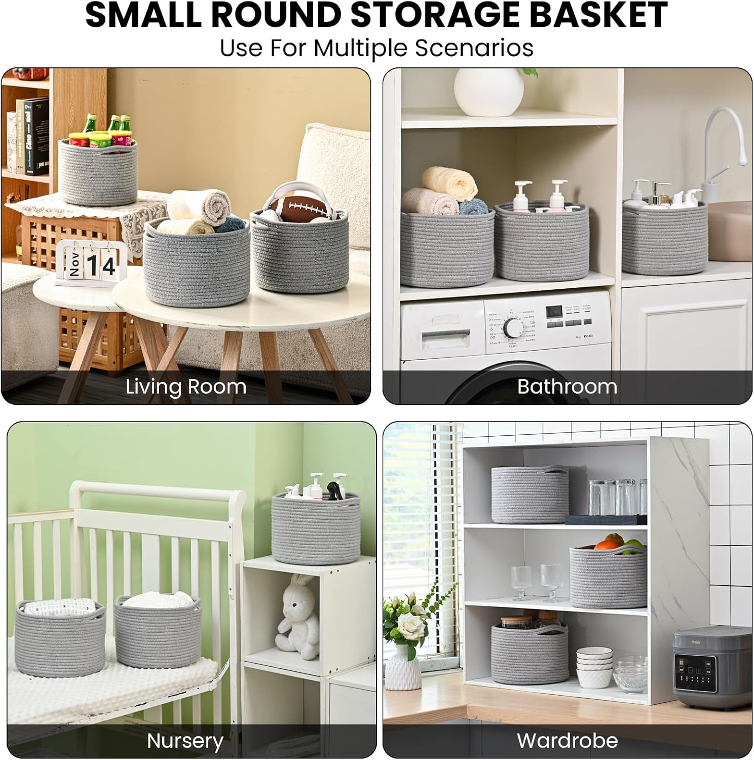 - Multi-Purpose Mini Baskets: Looking for little baskets for gifts? This small grey storage basket is an excellent choice, offering a little basket charm that's perfect for gifting. And it can be sorted to store cosmetics, jewelry, baby diapers, remote controls, keys, credit cards, wallets, charging cables, toys, snacks, paper towels and more