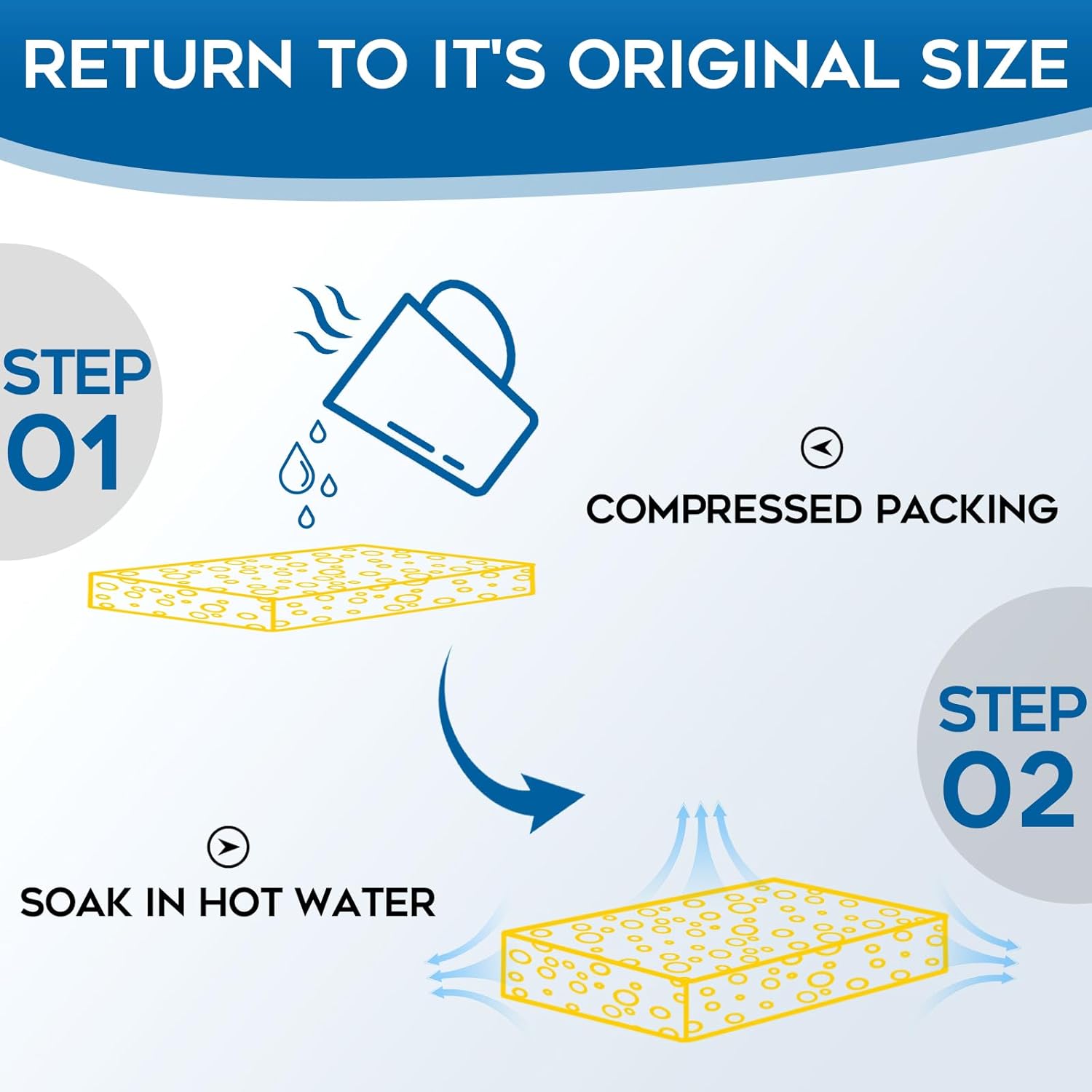 - VACUUM-COMPRESSED PACKING:Our kitchen sponges pack have been vacuum-compressed,Please open it and soak it in hot water for a while, it will return to its original state.If you don’t like this product, please contact us to receive a refund.