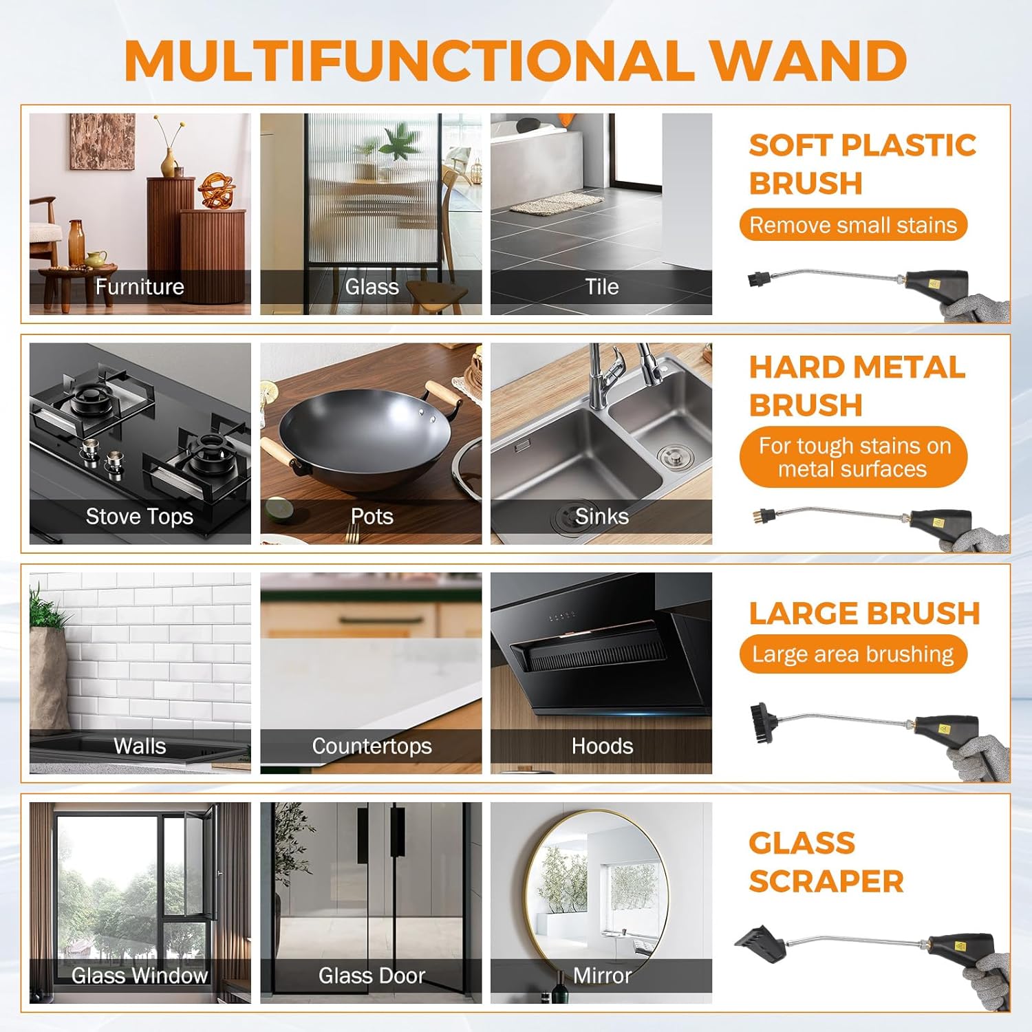 - **Versatile: Ideal for cleaning car interiors, floors, tiles, range hoods, upholstery, refrigerators, air conditioners, car tires, bathrooms, and kitchens.