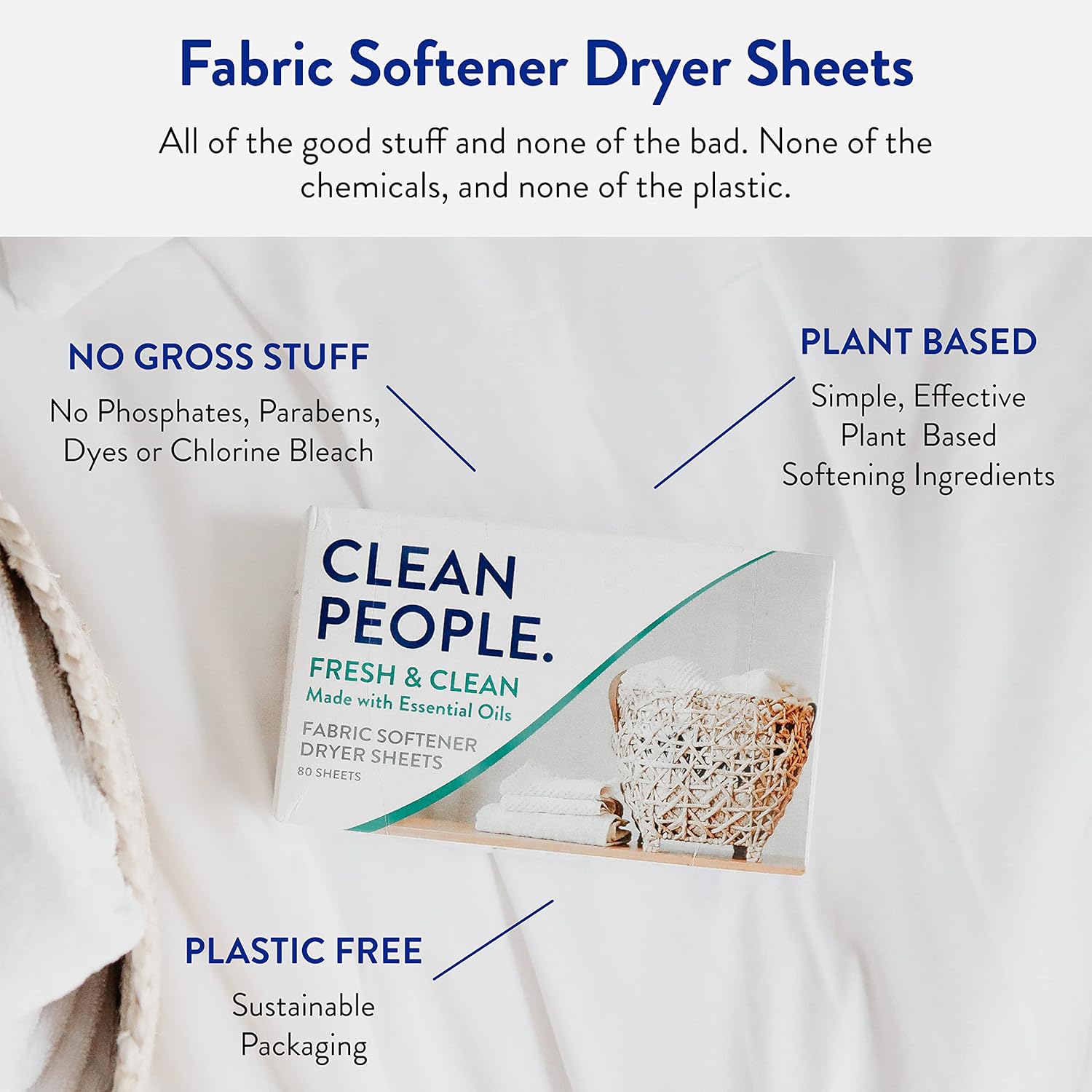 - Unlike others, our dryer sheets are not scented with synthetic fragrances but with essential oils. 240 Sheets of Clean People Fabric Softener with a great Fresh Scent. That's 240 soft & static free loads!