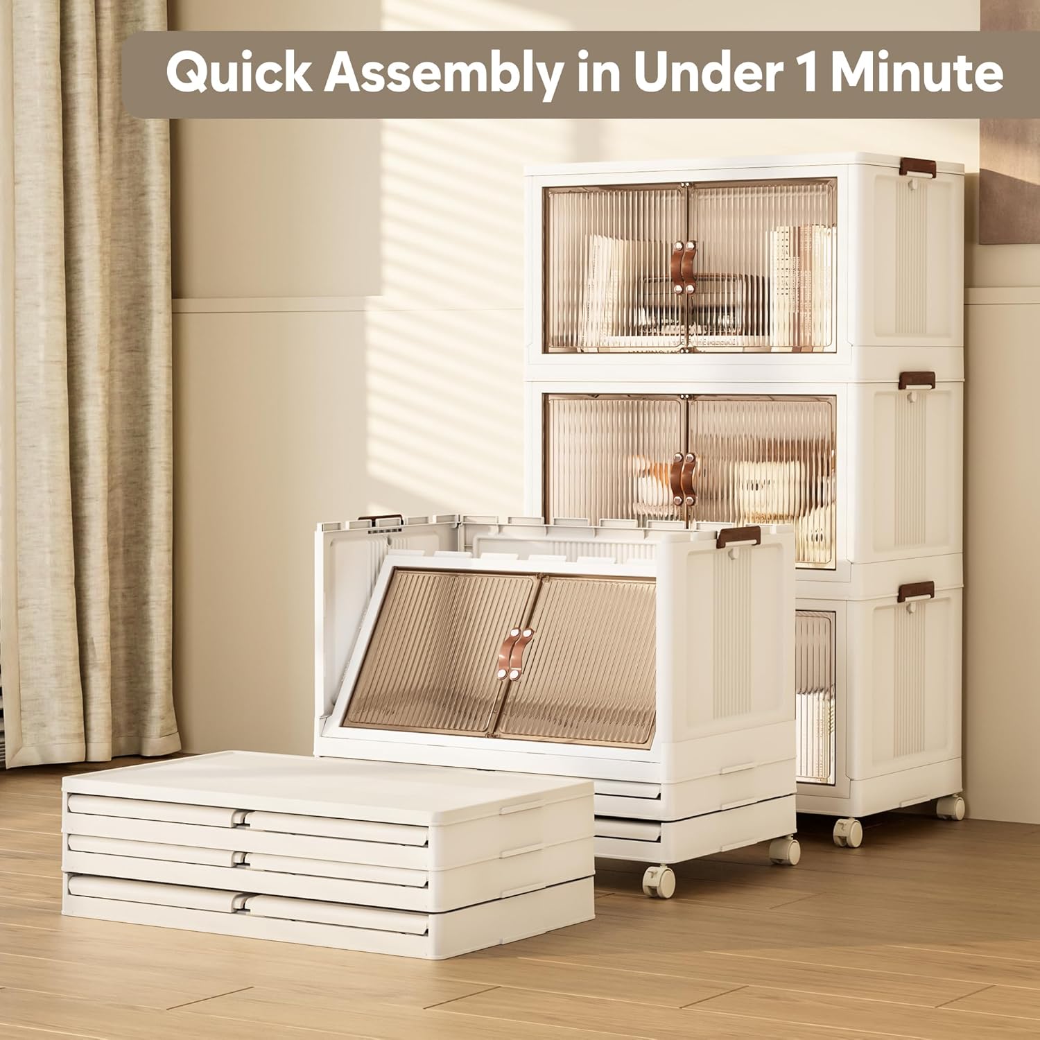 - 【Magnetic Doors & Rotating Wheels】The bins offer two opening options: front or top. The magnetic closure allows easy access. The 4 rotating 360-degree wheels make them easy to move, ideal for use in storage containers and closet organization in any room like your closet or bathroom.