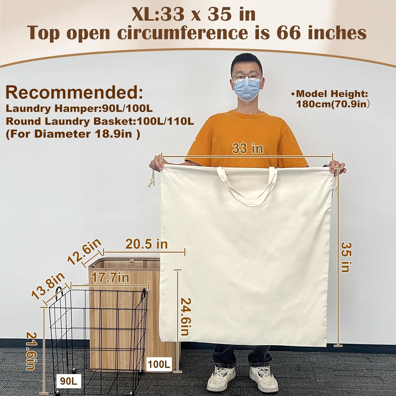 - BIG Size 33"Lx35"H: XL bag Top circumference is 66in(168cm), VERY LARGE size, fit for most 90/100L laundry hamper or diameter 18.9" round laundry basket- PLEASE VERIFY SIZE BEFORE PURCHASE