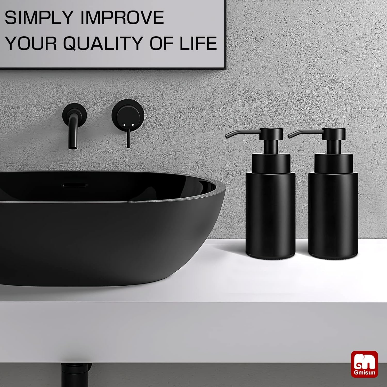 GMISUN Foaming Soap Dispenser, 10 Fl oz/300 ml Matte Black Glass Foaming Hand Soap Dispenser, 2Pcs Hand Soap Dispensers for Bathroom & Kitchen, Refillable Foam Soap Pump Bottle with Waterproof Labels