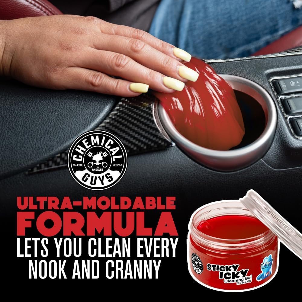 - GENTLE BUT TOUGH - Get those annoying crumbs out of your console, get into those hard to reach cracks that have been bugging you; Sticky Icky can get it out and is a high-tech cleaning compound which is gentle on your car’s interior.