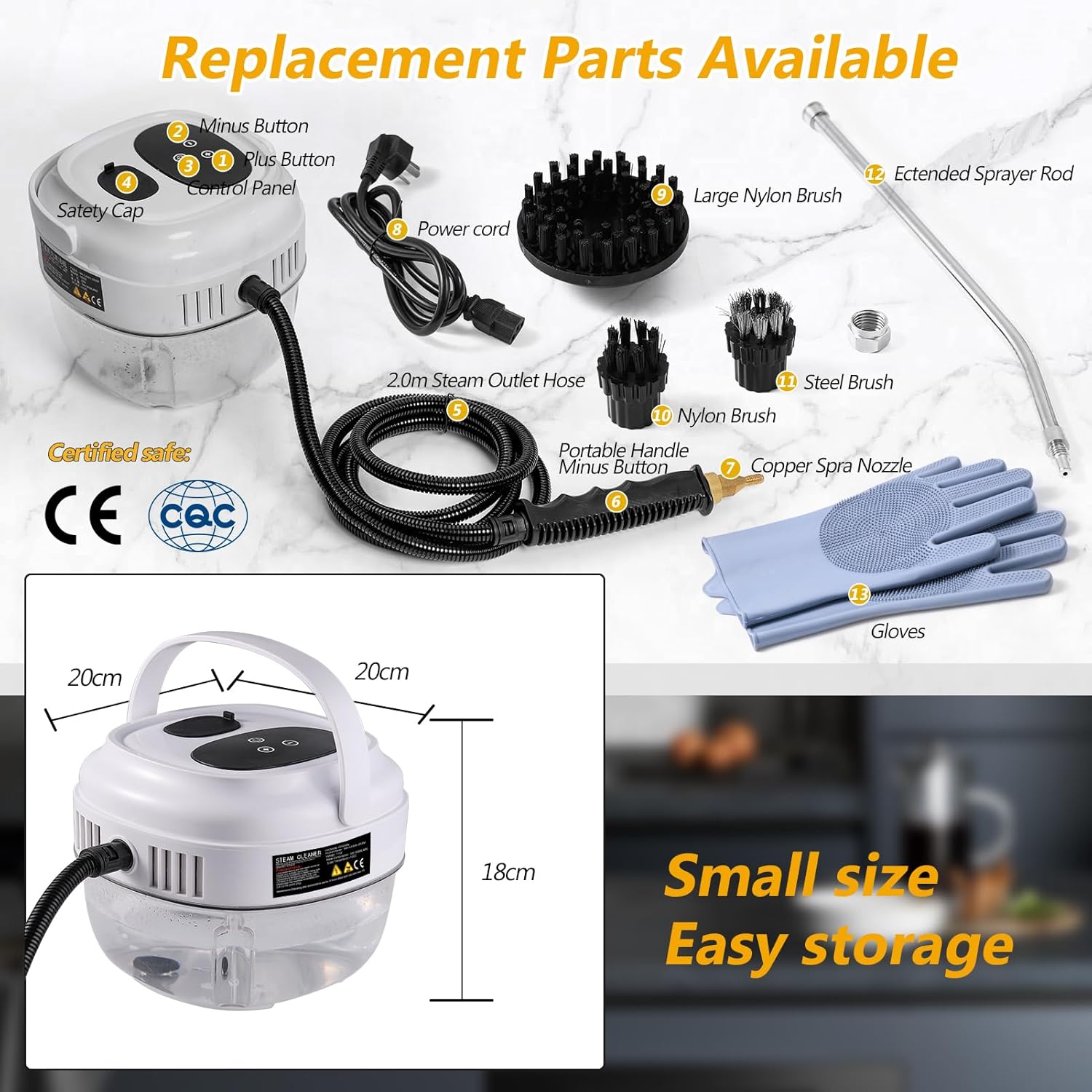 - 15s Powerful Pressurized Steam Cleaner Heat-up - This hand held steam cleaner delivers a 2500W high-pressure power, it can quickly generate steam up to 221℉ (105℃) in just 15 seconds, making the pressurized steam cleaner perfect for removing grease, grime, dust, and stains effortlessly, protecting your hands away from dirt