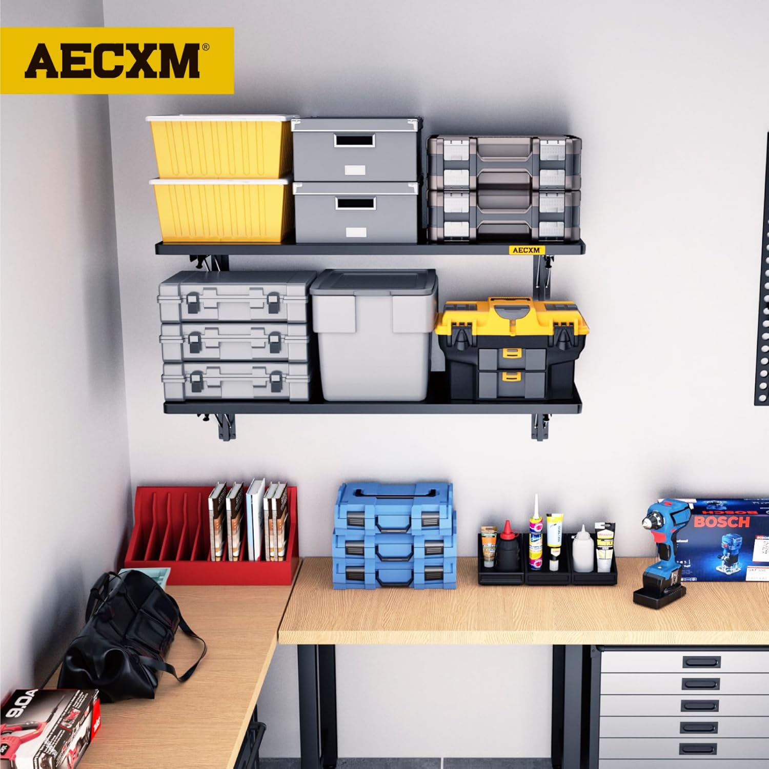 - KIT INCLUDES:Includes 2pcs of face plate; 4 Folding Brackets; 24Hexagonal screws (Hardened ∅0.2" L/2"); 4 Sets of rail attachment bolts; 1 Drill bit; 1 Socket; 1 installation manual. All hardware of AECXM Professional Series Wall Mounted Shelf are under strict quality control and testing, We strive to provide our customers with a quality shopping experience, If you have any questions, Please feel free to contact us