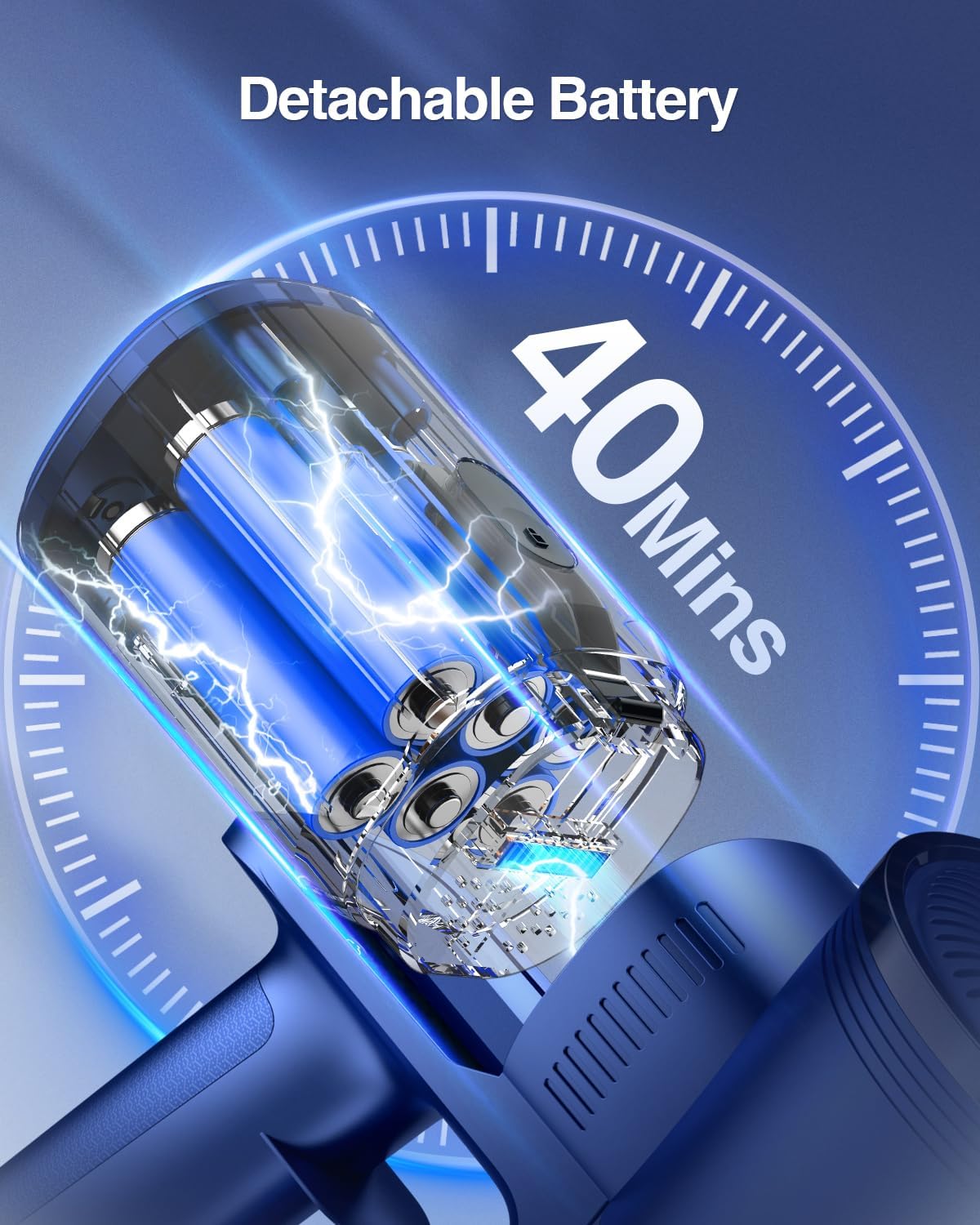 - 【40Mins Running Time and LED Display】The household vacuum cleaners has 6 built-in high-capacity rechargeable batteries, up to 40 minutes of suction, and a built-in protective plate to ensure your safety during use. The cordless stick vacuum has an easy-to-read LED screen that allows you to monitor the power level and adjust the suction power in real time, it is very suitable for large families.